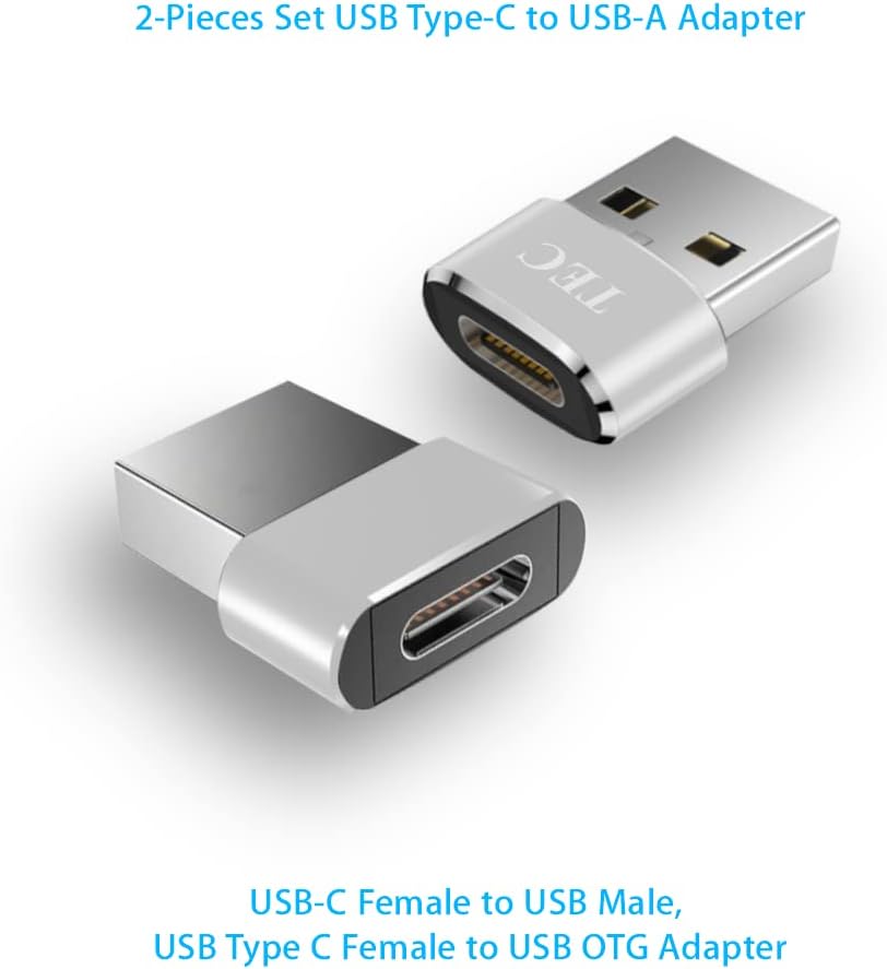 Compatible with a wall charger, docking station, power bank, car charger with USB-A port. PD (Power Delivery) Devices Works with only one side. PD devices include: iPad Pro, MacBook/MacBook Air/MacBook Pro with USB-C ports. [Additional USB C Port to your device] You can now charge a smartphone/tablet with your laptop or sync data between your smartphone/tablet and laptop. [Sync Data between USB-C Device and Laptop] Compatible with a flash drive, hard drive and card reader with USB-C plug. You will be able to sync data between these devices and your laptop with a USB-A port. [SPECIFICATIONS]: Package set : 2 Pieces Material : Aluminum Alloy Housing + ABS + Metal Color : Silver Supported Socket : Supports USB 2.0/3.0 | Supports USB PD (Power Delivery) Fast Charging Connector type : USB Type-C 3.1 Female to USB-A 2.0 Male Input Voltage : DC 5V 3A Output : 80W Max (Depending on the Type-C Cable and device socket) Product size (L x W x H): 13mm x 15mm x 7mm Product weight : 3g