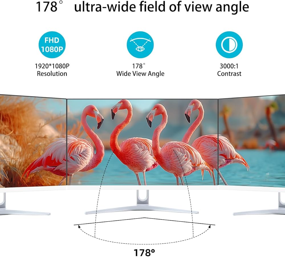 【FHD Computer Monitor】24 inch PC monitor with FHD 1920x1080P resolution, IPS technology, 1000:1 contrast ratio, 100% SRGB, 16.7M colors and 300cd/㎡ brightness gives you brilliant visuals and unforgettable quality. The 178° wide viewing angle also allows you to enjoy clearer, sharper, and more delicate images at any angle.