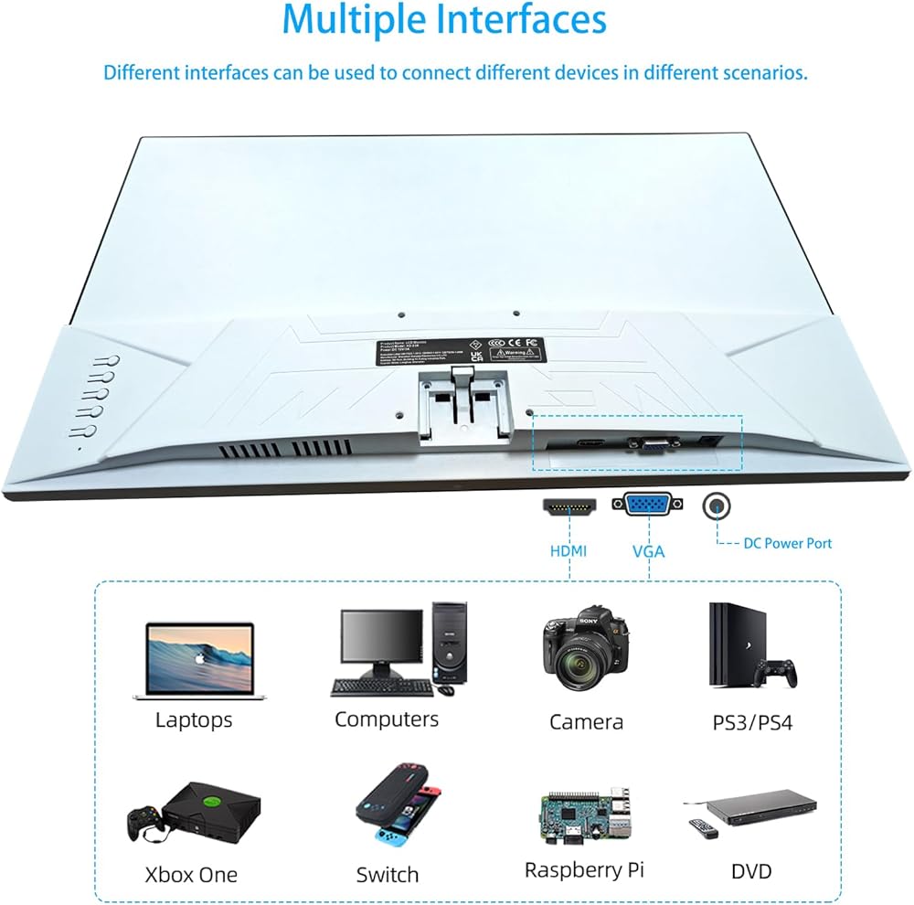 【Wide Connectivity】ERCGWOP 24 inch 1080P monitor is plug and play, easily connect to your PCs, gaming consoles and peripherals etc via HDMI and VGA ports, transmiting high-quality images, achieving freely switch between home office and big-screen entertainment.