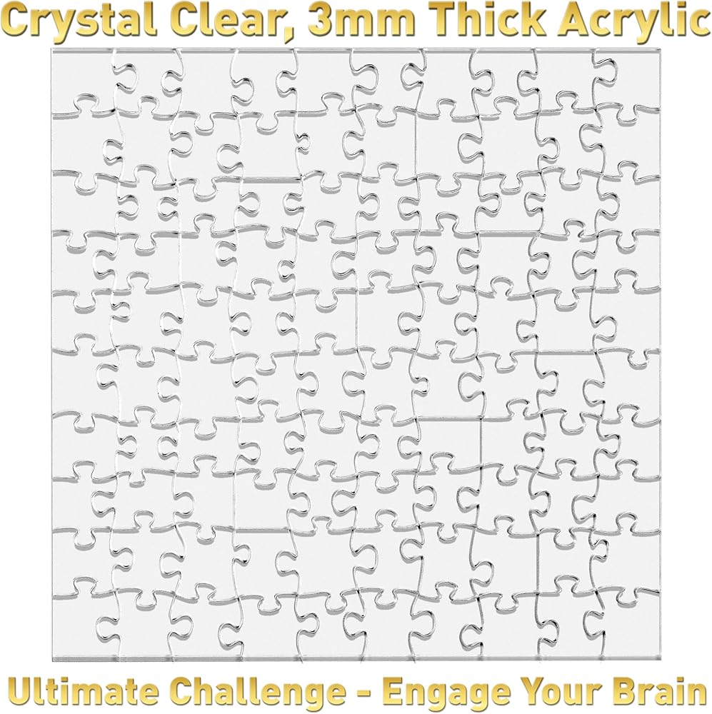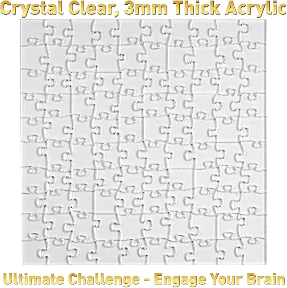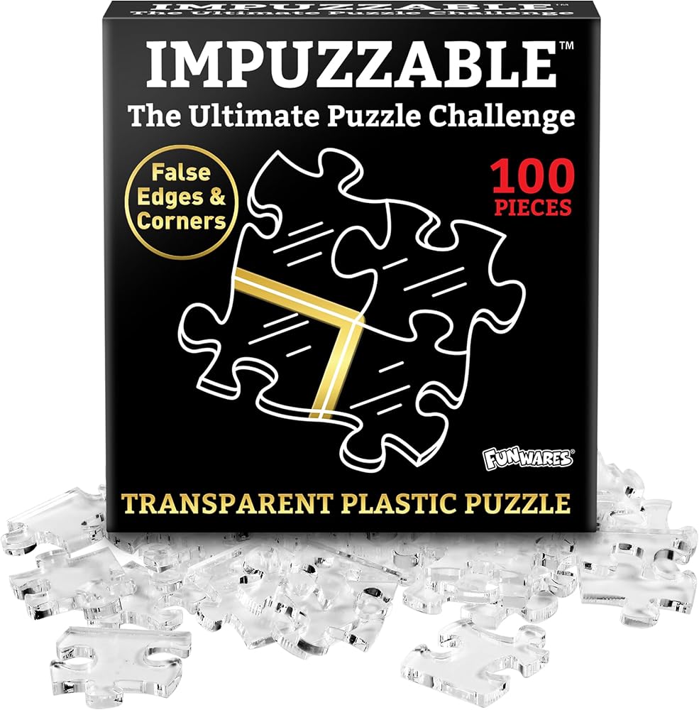 لغز مستحيل بجنون من Funwares: لغز أكريليك شفاف مكون من 100 قطعة للبالغين، كل قطعة فريدة من نوعها، حواف زائفة، زوايا زائفة، أصعب لغز للبالغين، هدية الفيل الأبيض للبالغين.
