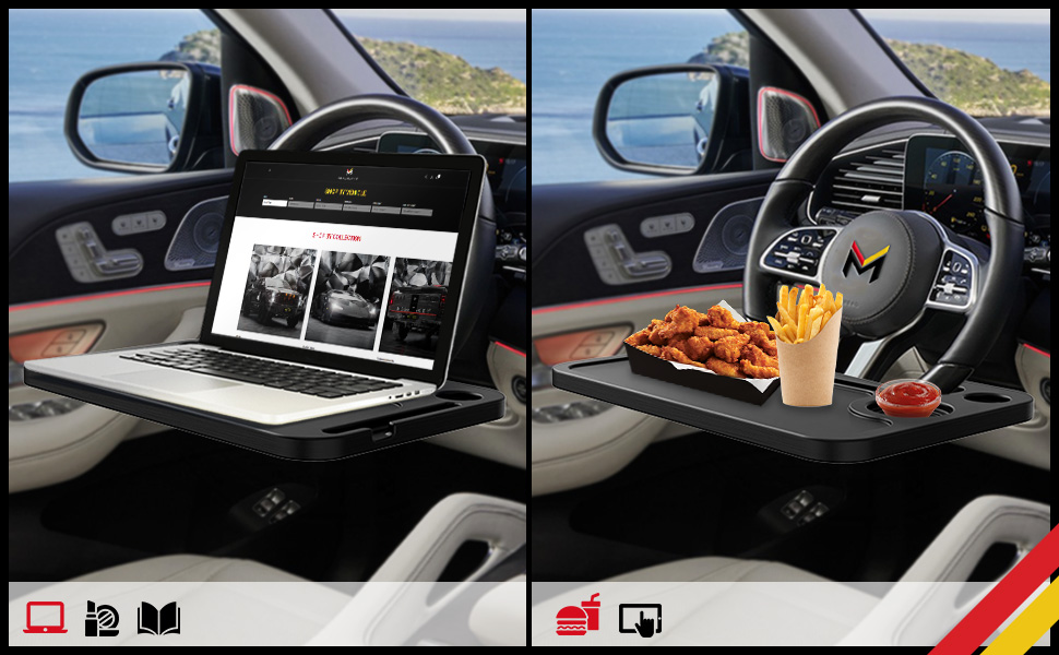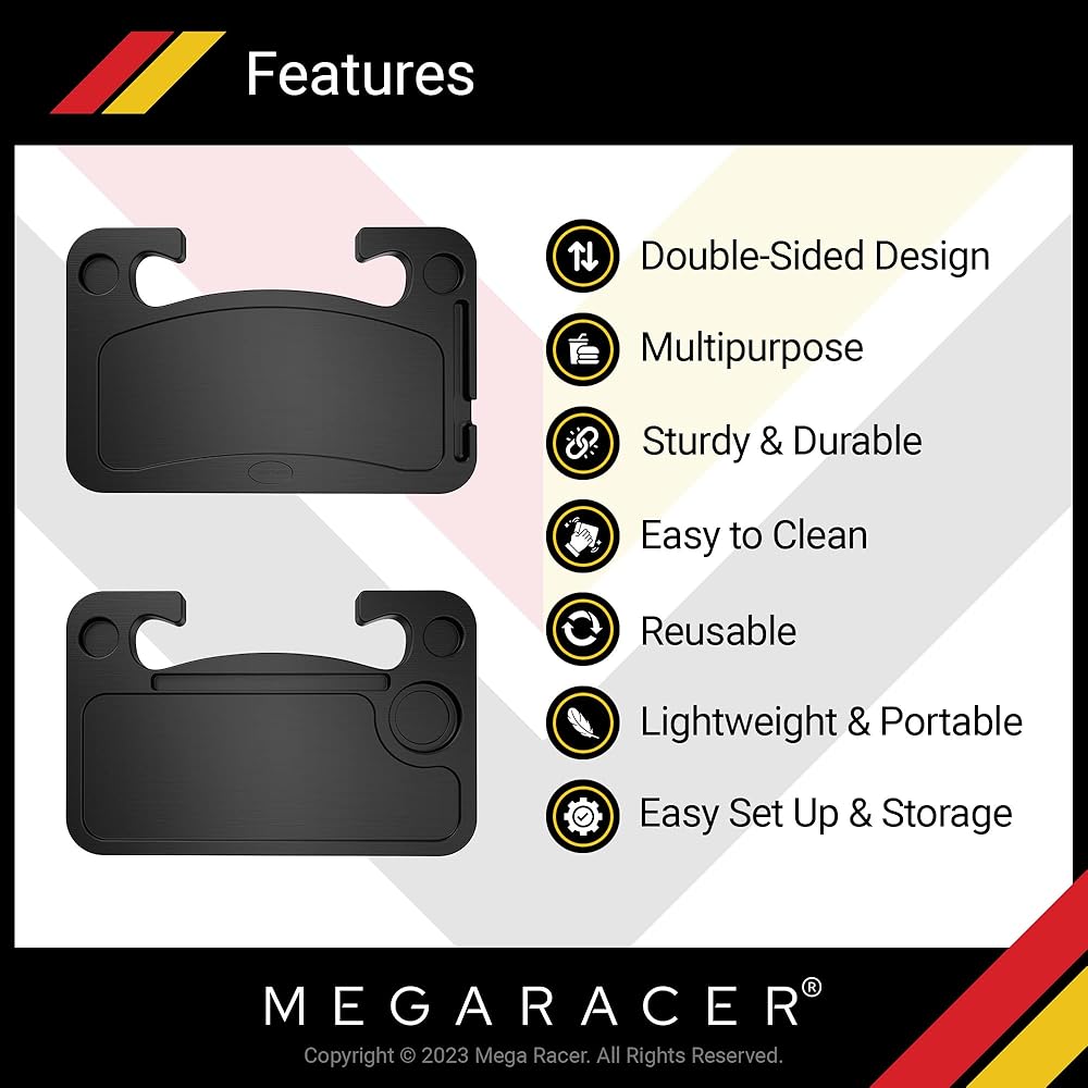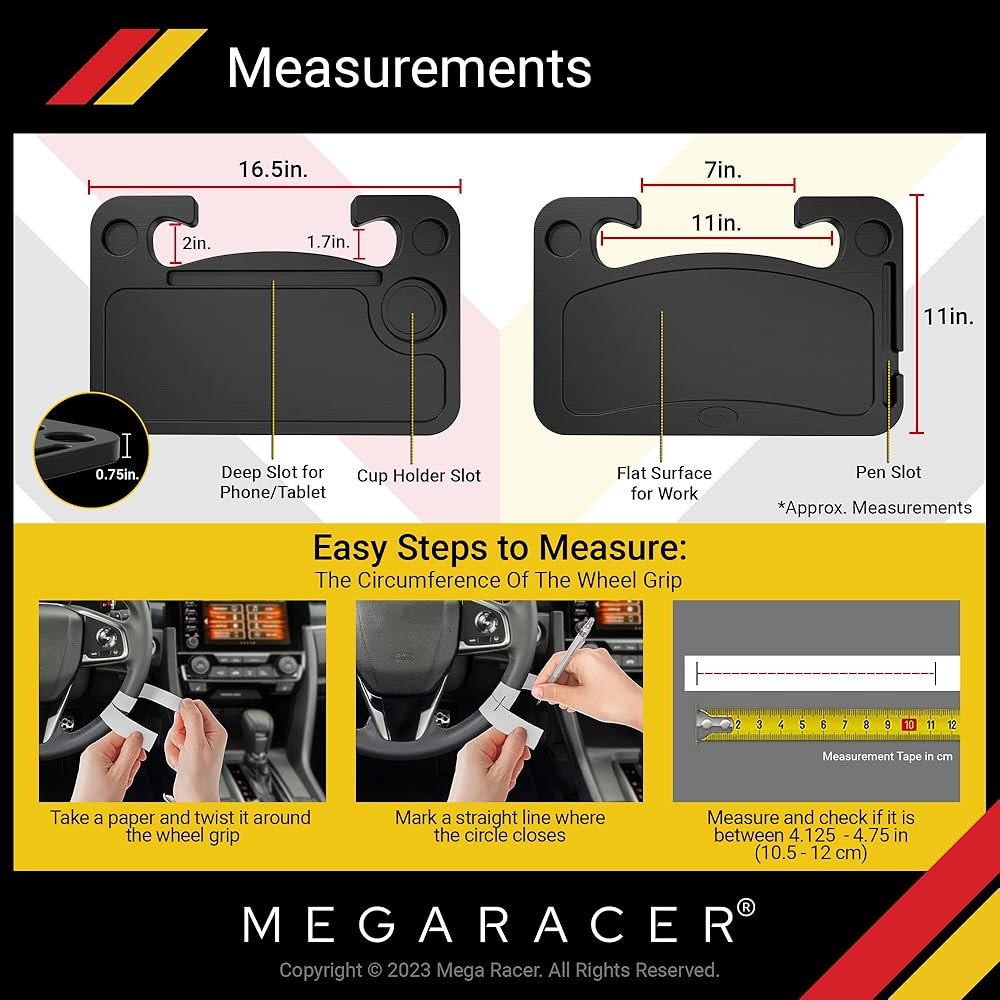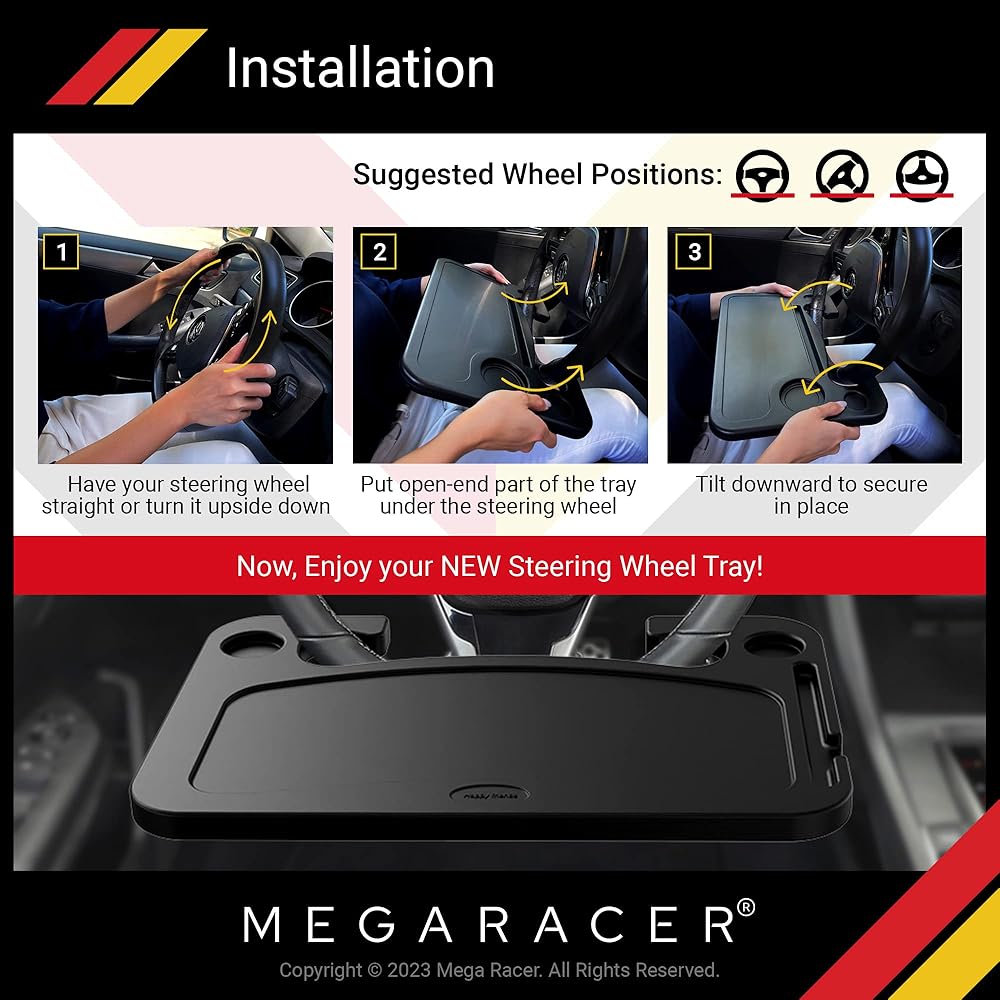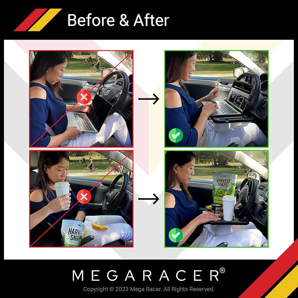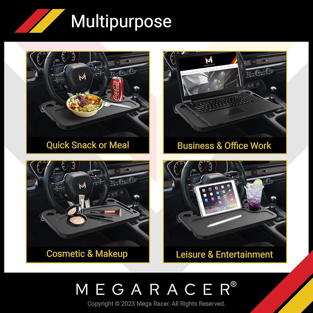 طاولة سيارة بعجلة القيادة ميجا ريسر - للسفر أو الوجبة أو محطة العمل، للسيارة والشاحنة وسيارات الدفع الرباعي والشاحنة - ملحقات السيارات، أساسيات السيارة، مقاس عالمي، قطعة واحدة