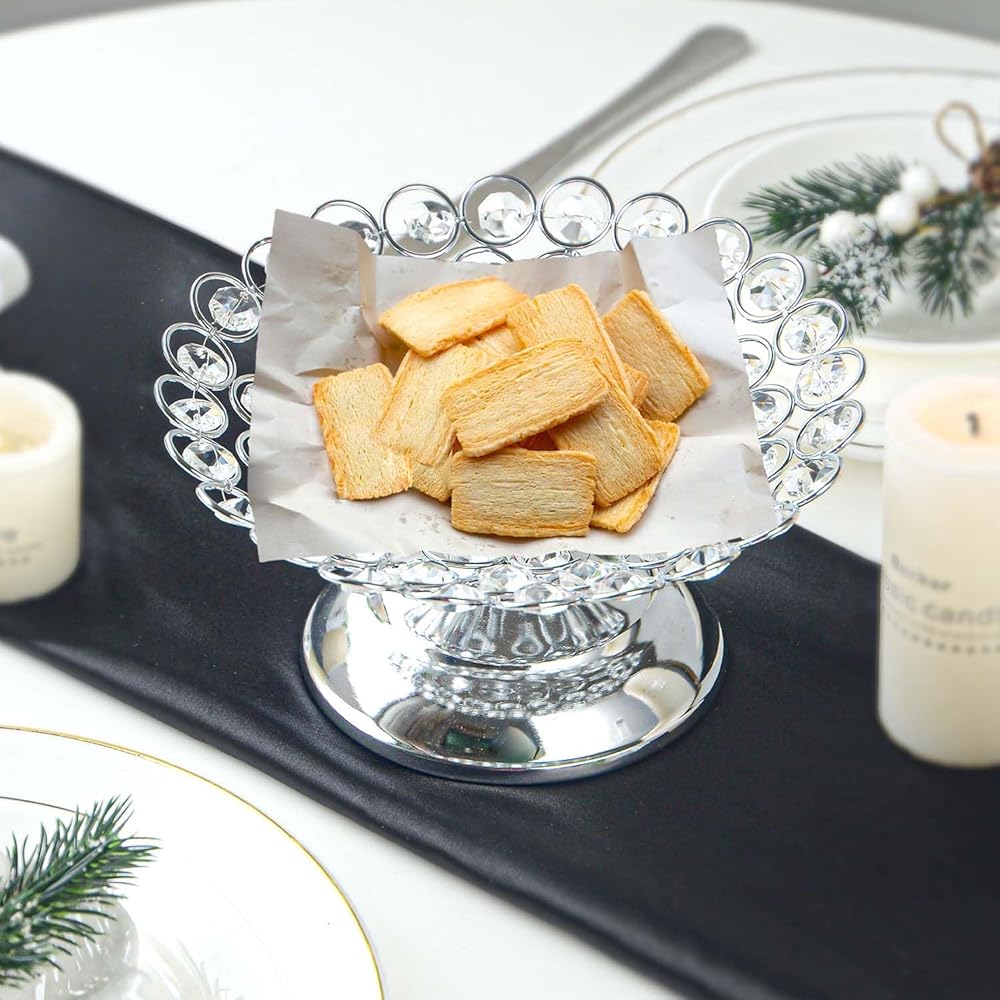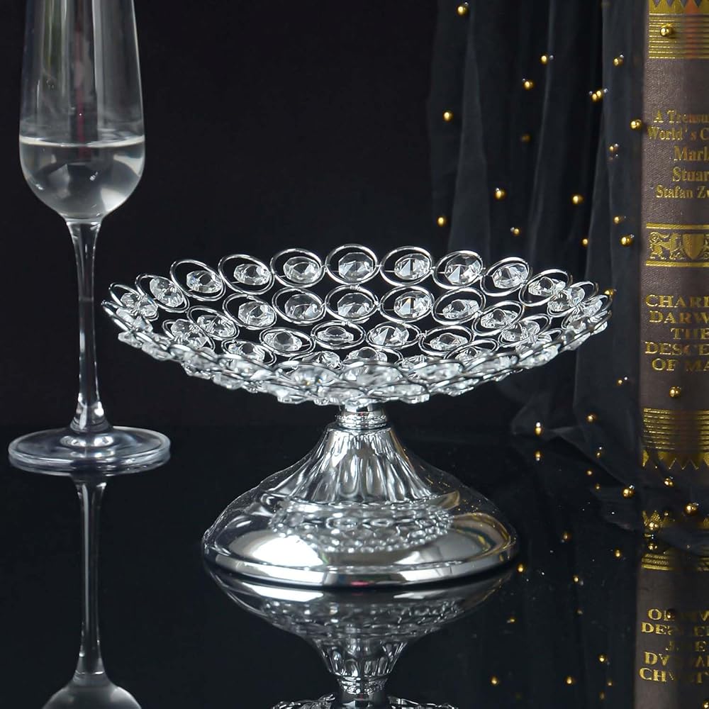 👍Versatile Use: The crystal cake stand is not only perfect for displaying cakes but can also be used for other desserts, such as cupcakes, cookies, and pastries. It is a versatile piece of decor that can be used in a variety of settings. Large spacious space,so candy tray can hold more things, such as various sweets, keys, watches, remote controls, lipsticks, perfume,Jewelry, necklace, earring and small office supplies.