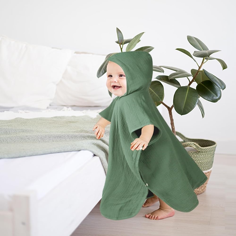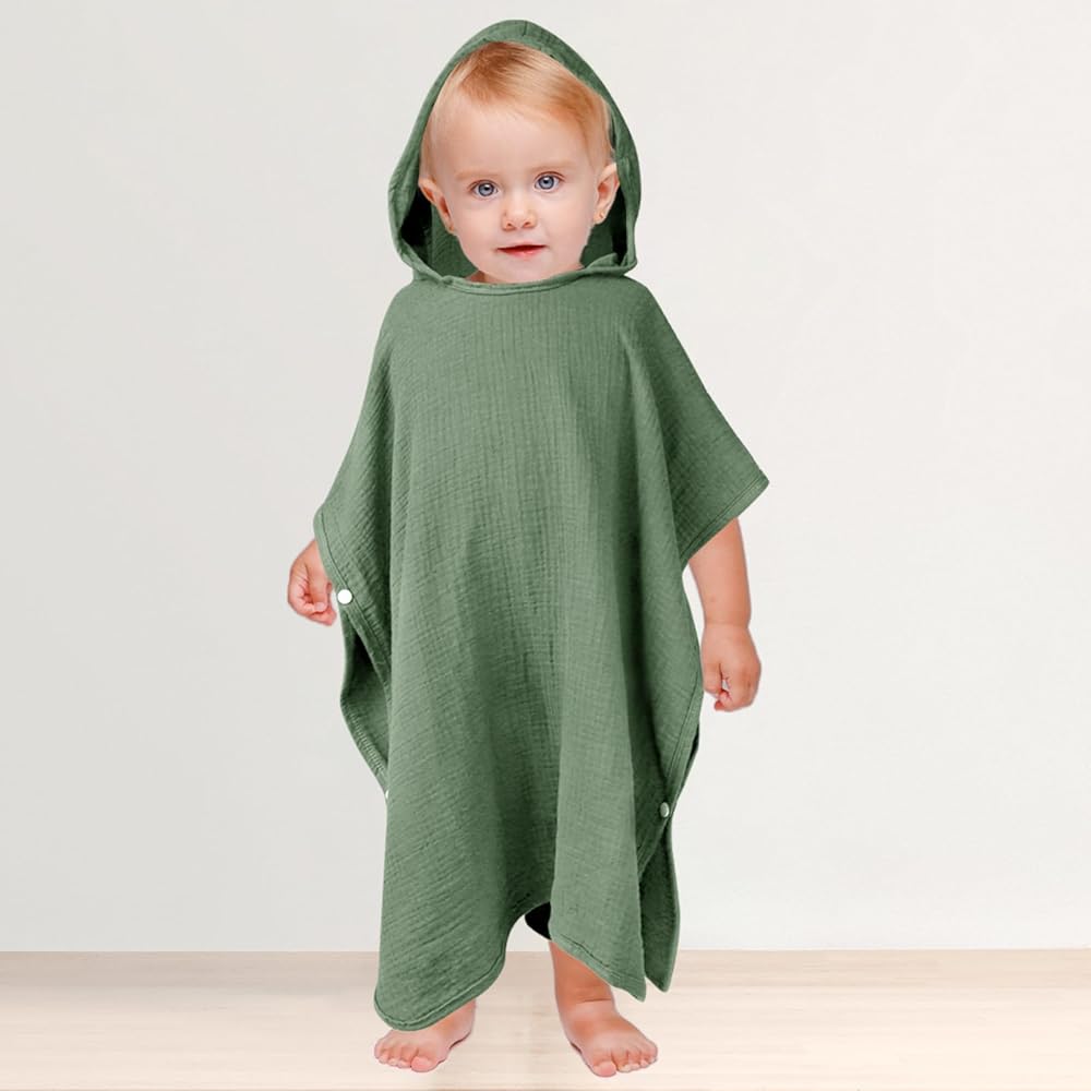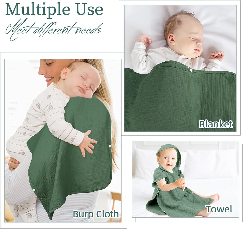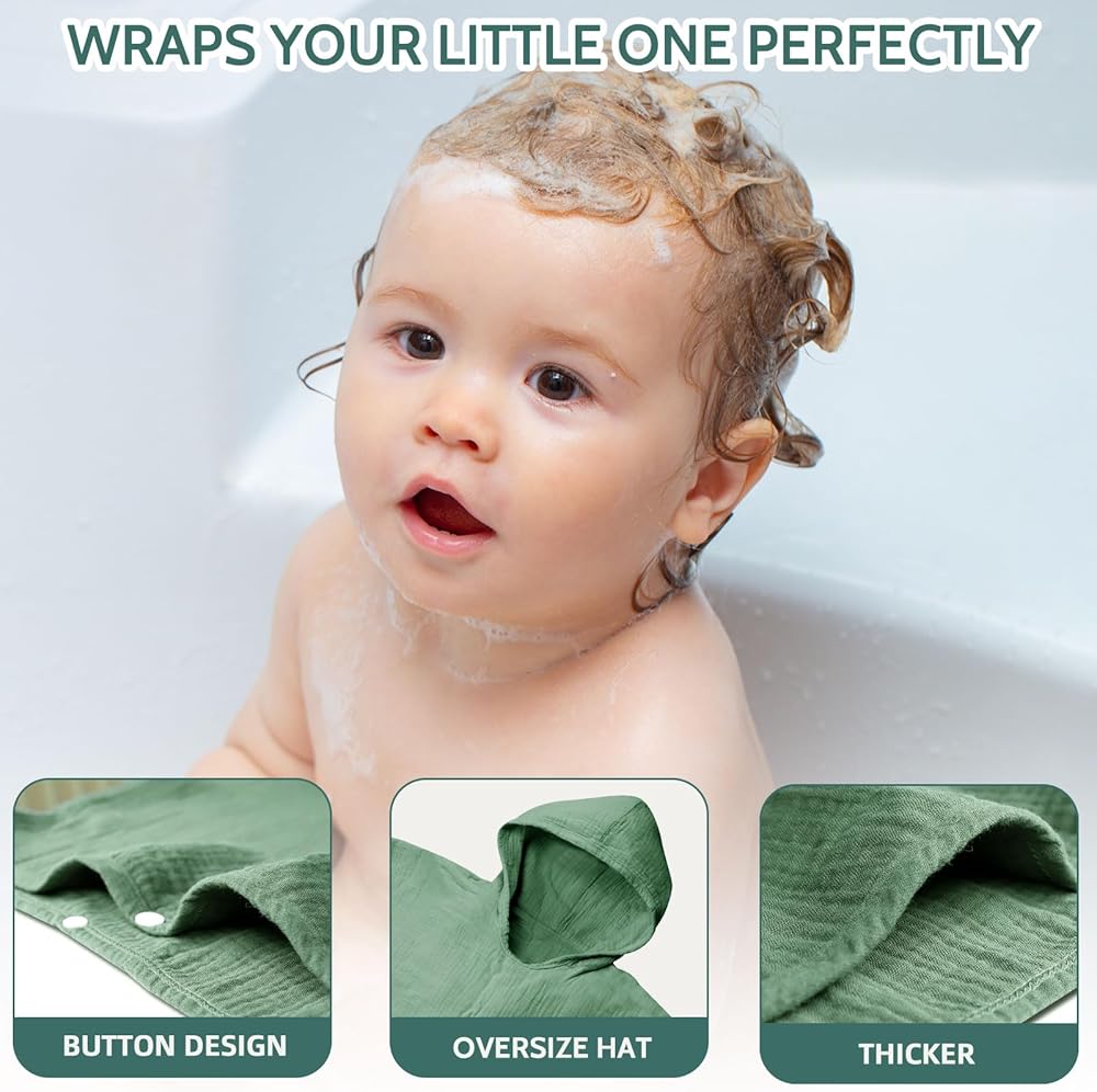 [تصميم فريد] مناشف أطفال من الموسلين مزودة بأزرار على كلا الجانبين وتصميم مثلث بغطاء رأس، يمكن أن تلتف حول الطفل بعد الاستحمام، مما يحافظ على بشرة الطفل دافئة ومريحة. الألوان الصلبة الكلاسيكية والعصرية يمكن أن تتكيف مع المشاهد المختلفة وتلبي احتياجاتك.