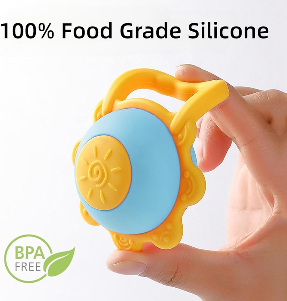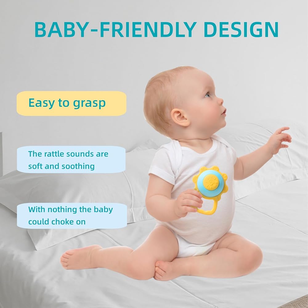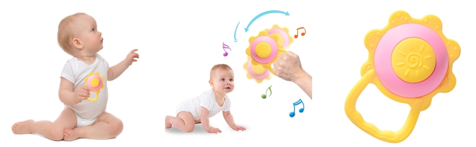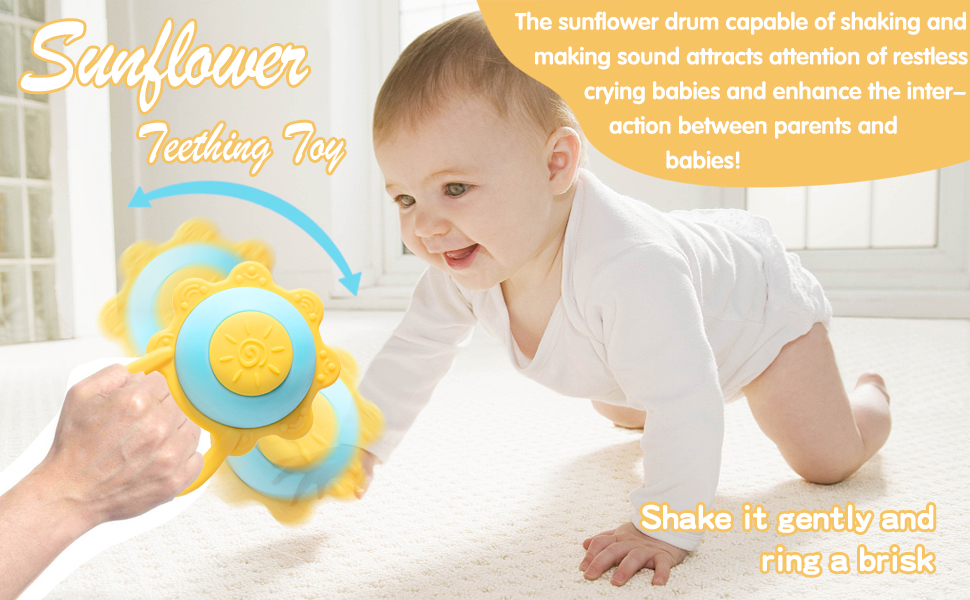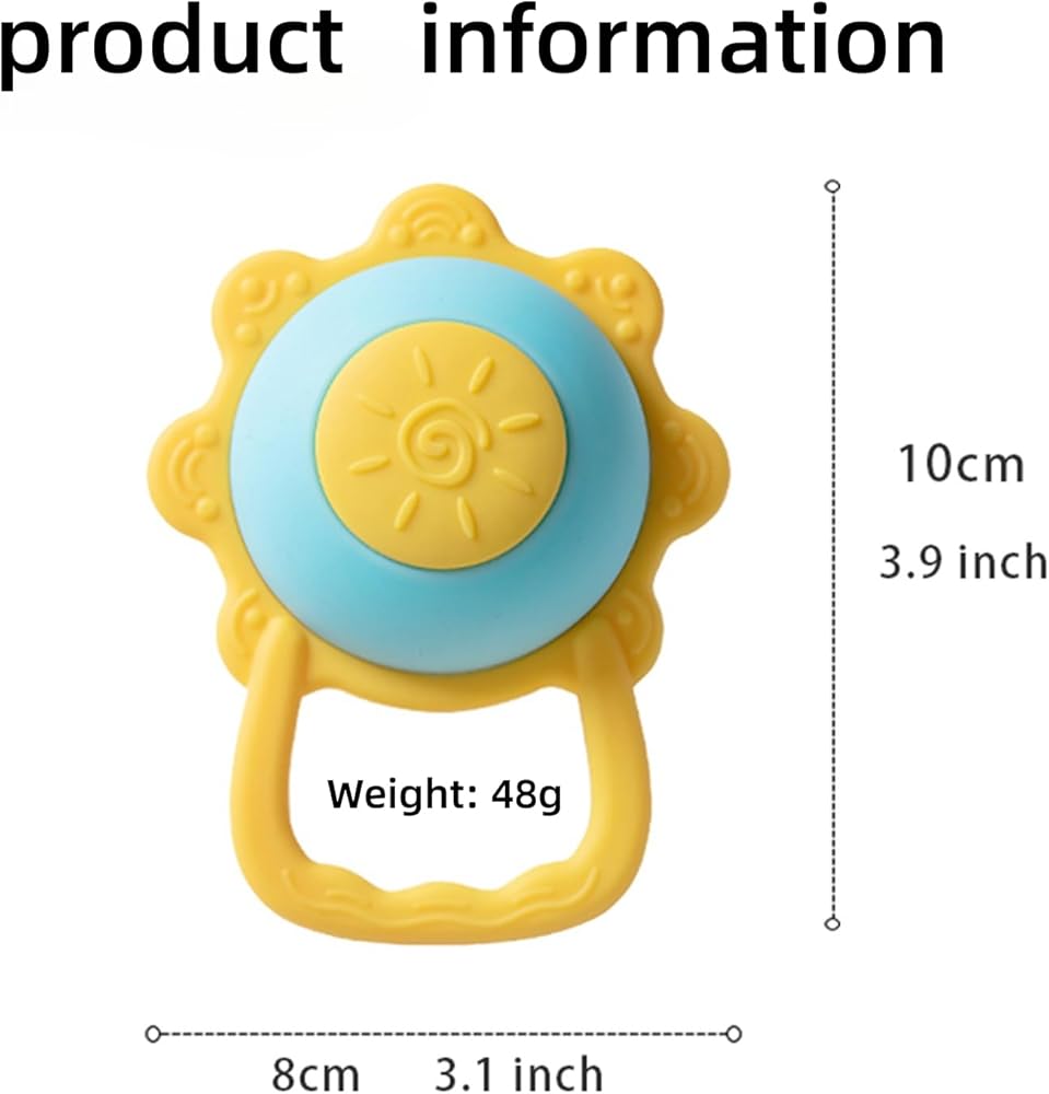 【تصميم مريح】يختلف عن ألعاب طحن الأسنان الأخرى، فإن تصميم خشخيشة عباد الشمس الفريد الخاص بنا جذاب جدًا للأطفال، حتى لا يمتص الأطفال الأصابع أو يعضون أشياء متسخة أخرى.