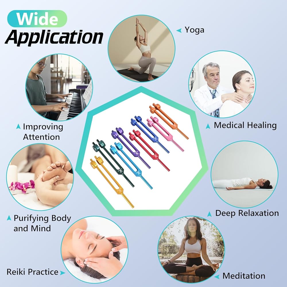 • 【Deep Relaxation】Tuning fork therapy helps induce a deeper state of relaxation, purifying the mind and body.It is not only a string instrument tuning tool, but also can help you relax yourself, relieve anxiety, refresh your mind, and enter a deep meditation state faster.