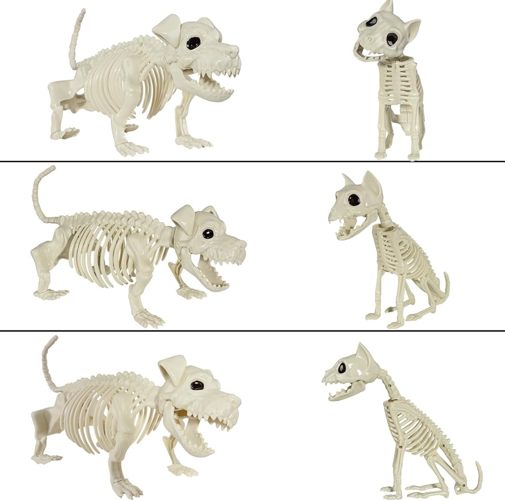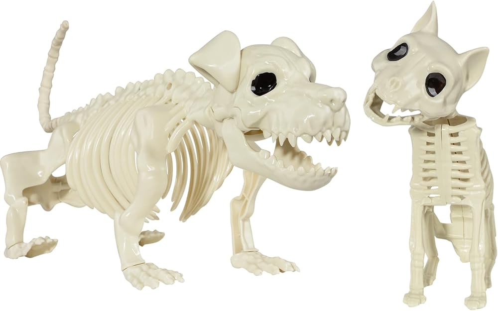 Realistic Looking: Our animal dog and cat skeletons have realistic look. The dog features a bendable tail and moveable head and jaw. The both are Wonderful Halloween Accessory to spook your neighbors, family and Fellow Trick-or-Treaters.