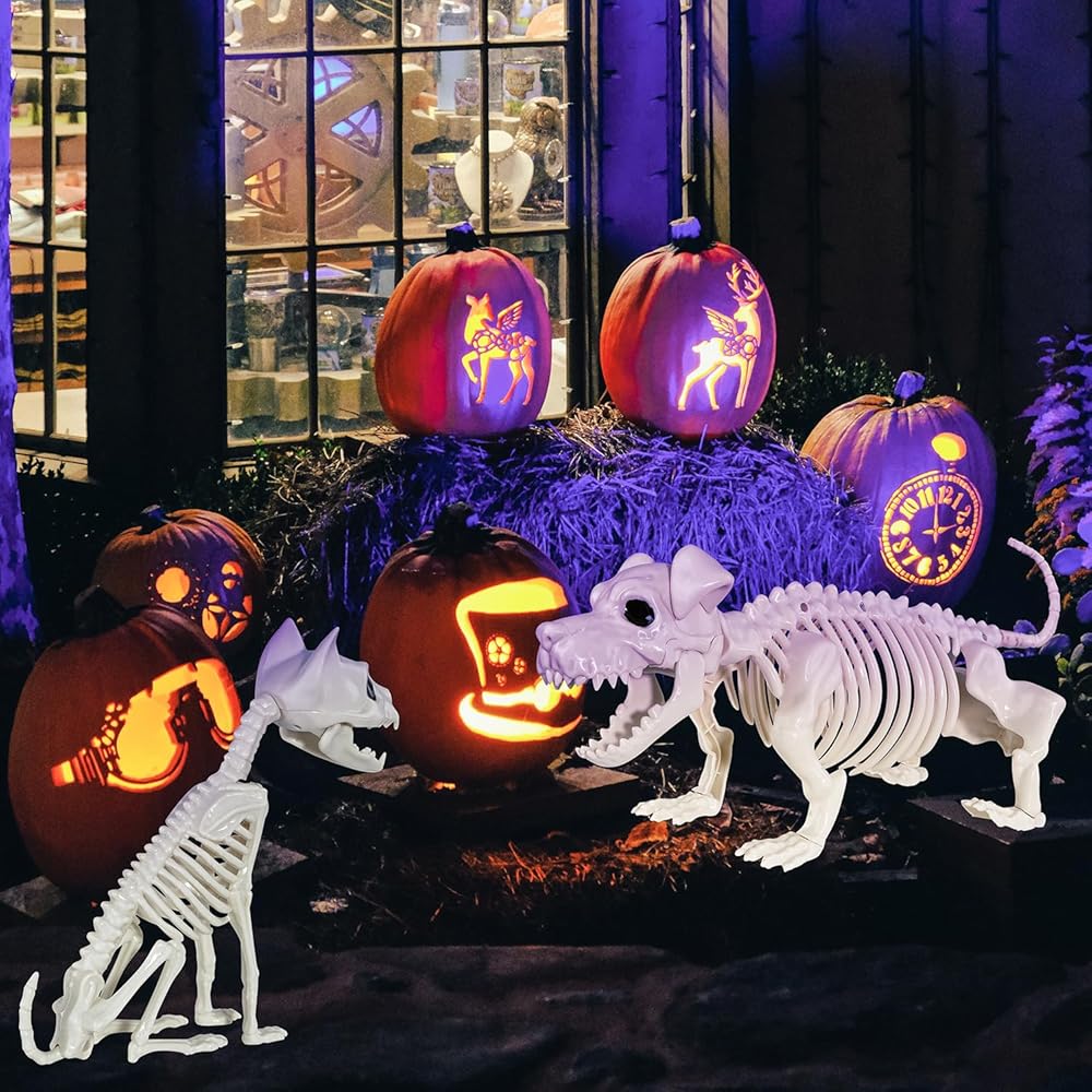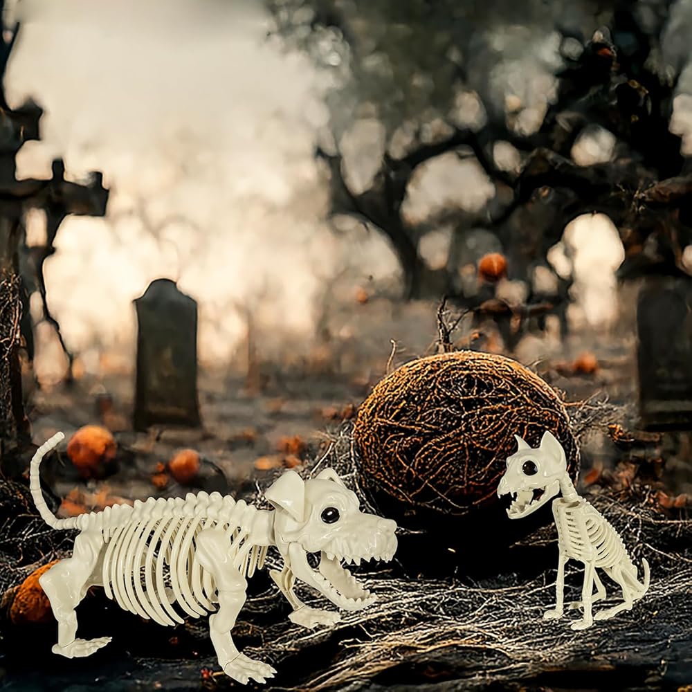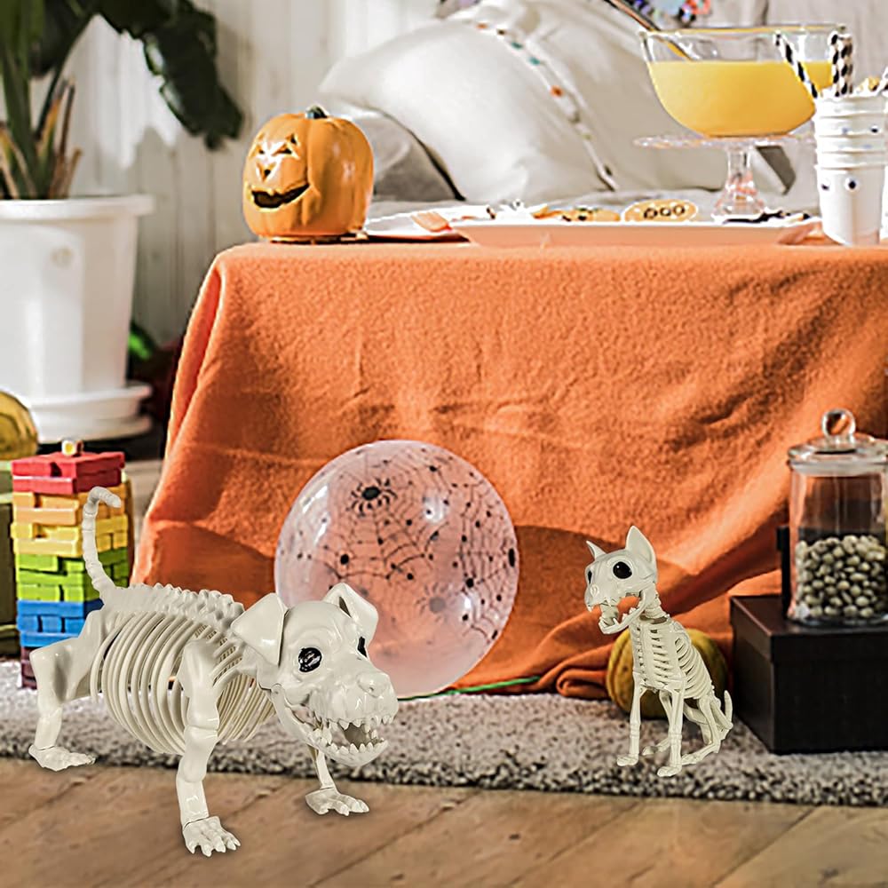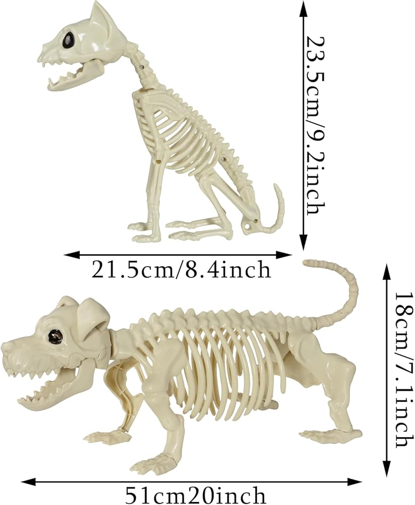 Coming with 2 Animal Skeletons, Our dog skeleton measures 51*18cm/20*7.1inch while the cat measures 21.5*23.5cm/8.4*9.2inch. Spooky addition to Indoor/Outdoor decoration, Halloween Décor.