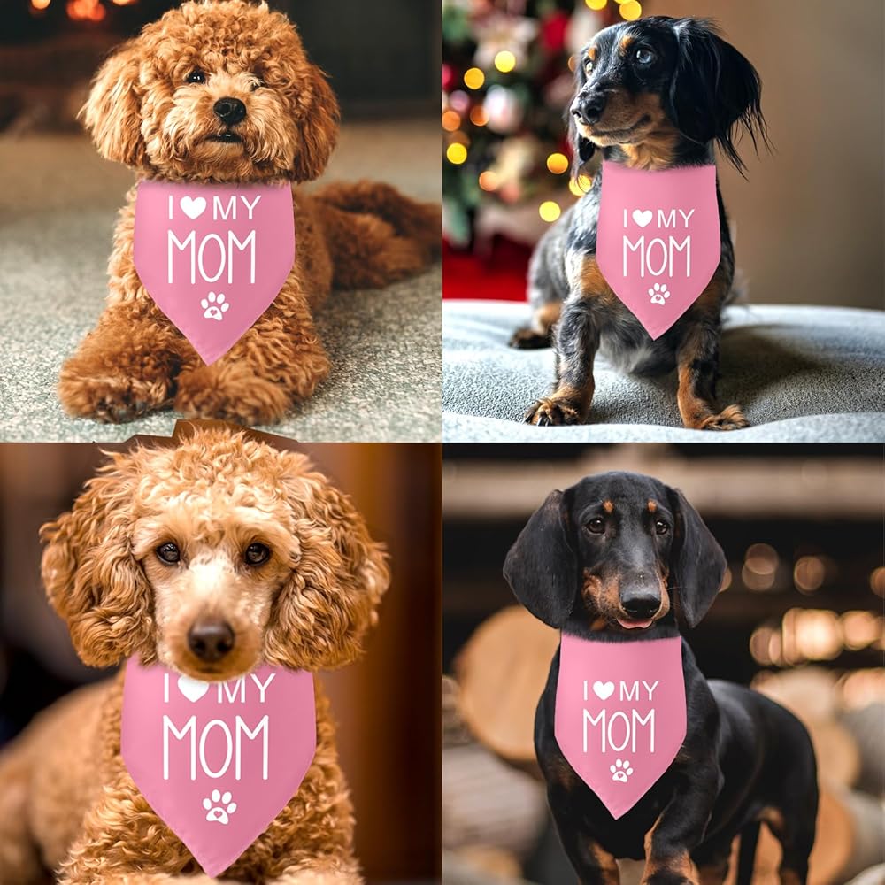 [Dog mom gifts for women]:These are the ideal dog bandanas,cute dog bandanas that read: "I love my mom", give them as a birthday gift to any dog lover in your life.
