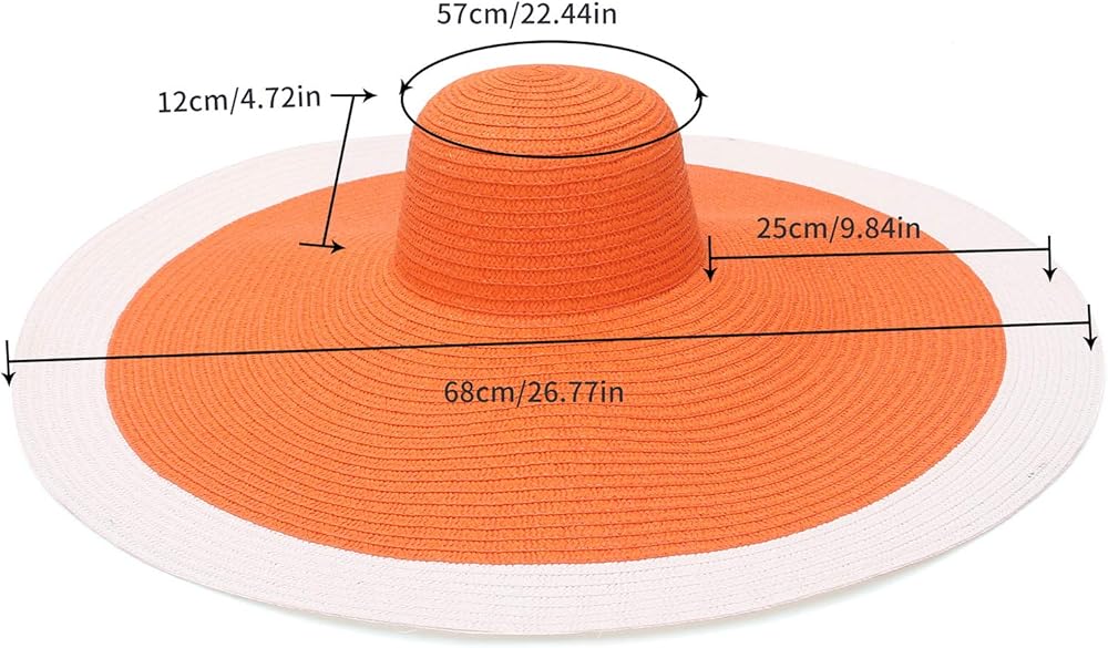 1. مقاس واحد يناسب معظم الأشخاص - 57 سم/22.44 بوصة، حجم قابل للتعديل، حافة كبيرة: 25 سم/8.84 بوصة، ارتفاع التاج الدائري: 11 سم/4.33 بوصة، قبعة شمسية مثالية لأزياء الصيف لمعظم النساء السيدات.