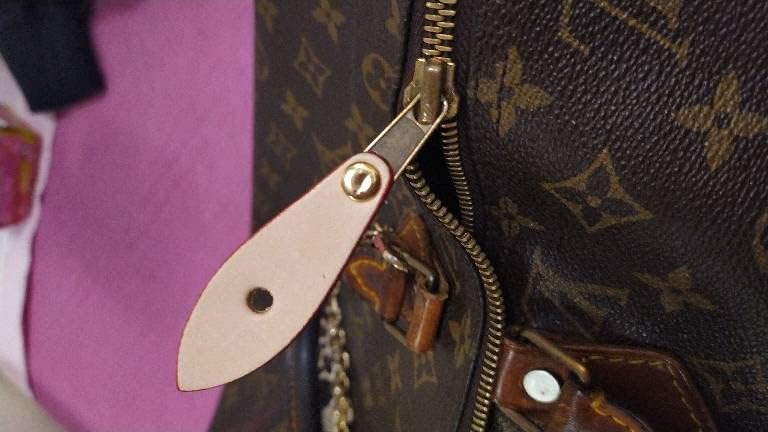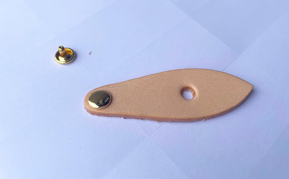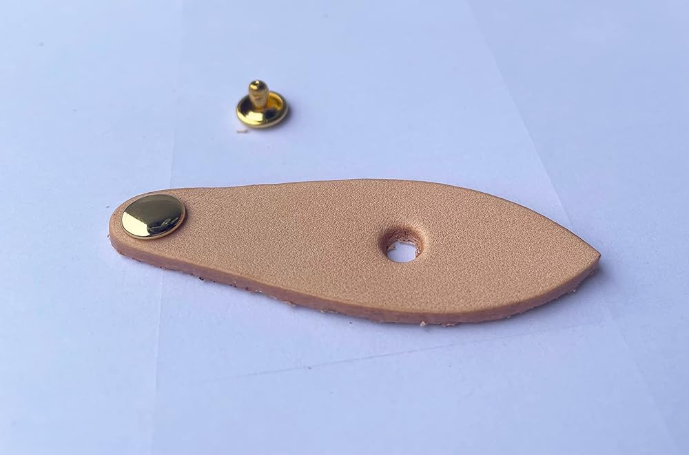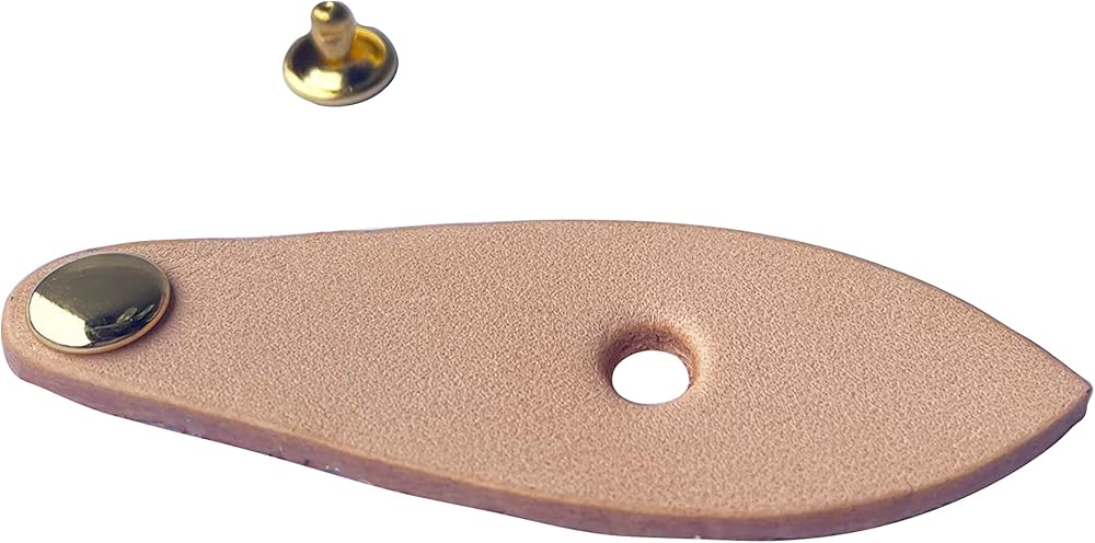 • Thick 2mm vachetta leather zipper pull tab (62mm length, 21mm at widest point) .6mm diameter brass rivet