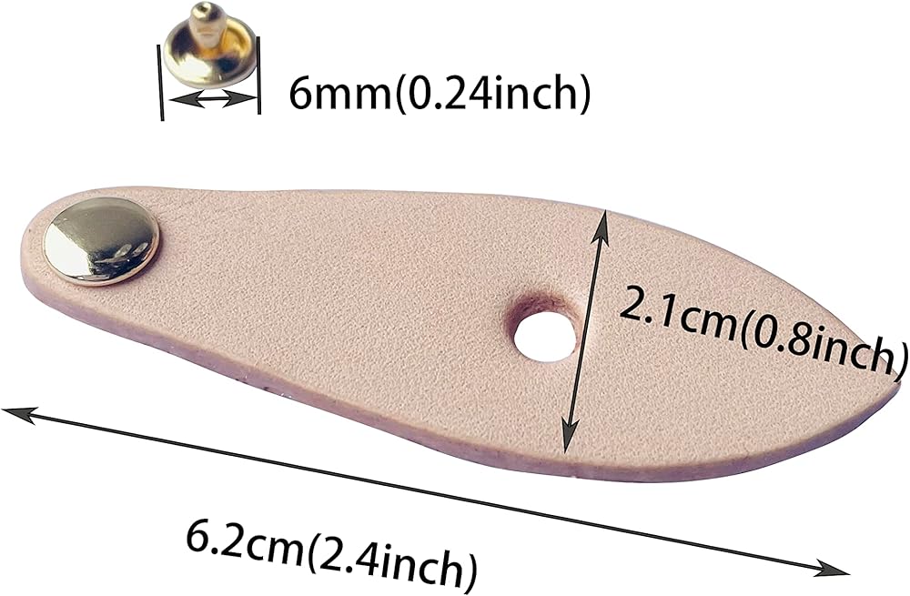 1.Size : L6.2*W2.1CM(L2.4"*W0.8") 2.Material : Real Vachetta Leather .The nature and tanned leather will get darker with use . the coffee color will keep its color . 3.Package include : 1× leather zipper pull +1 set copper rivet 4.These zipper pulls are perfect to replace your broken ones