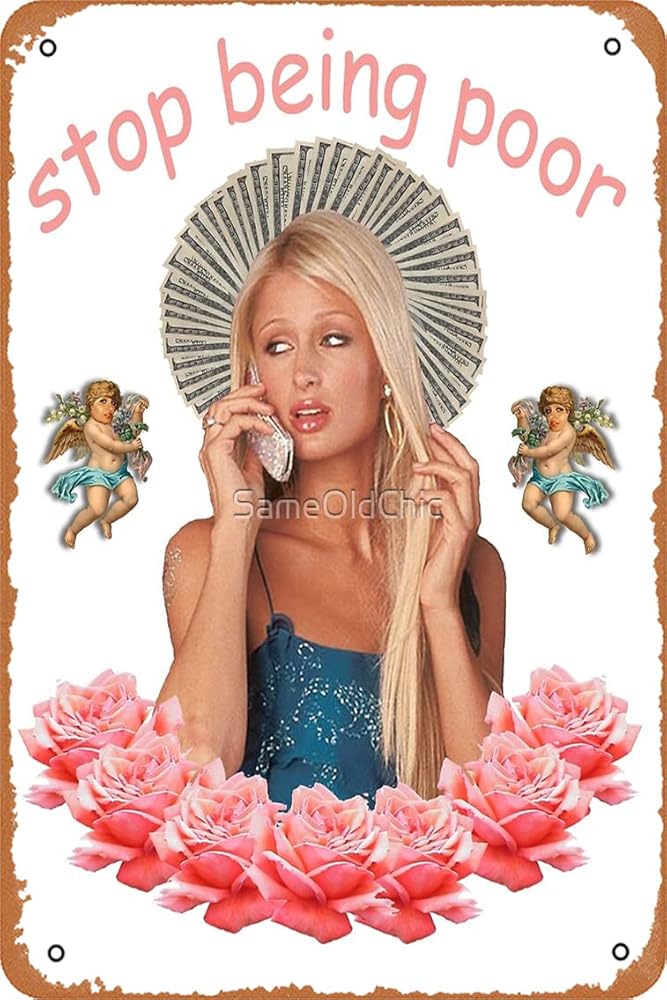 باريس هيلتون 'توقف عن كونها فقيرة' طباعة فنية ريترو معدن القصدير علامة عتيقة 12 × 8 بوصة شريط منزلي رجل كهف جدار ديكور