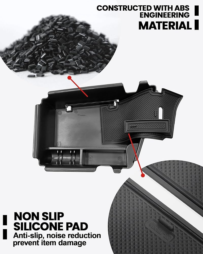 【خامة عالية الجودة】مصنوعة من مادة أكريلونتريل بوتادين ستايرين عالية الجودة من الداخل، هذه الصينية صديقة للبيئة وخالية من الروائح. يمكن لبنيته المتينة أن يتحمل قسوة السفر على الطريق، مما يمنع العناصر من الانزلاق أو الخشخشة أثناء القيادة.