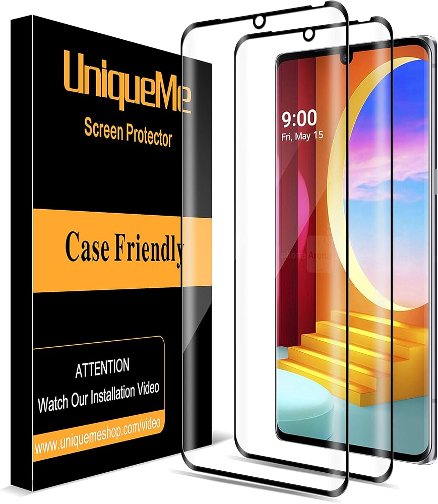واقي شاشة UniqueMe [عبوة من قطعتين] متوافق مع زجاج LG Velvet/LG Velvet 5G UW المقوى، طبقة تغطية كاملة ثلاثية الأبعاد عالية الدقة [سهلة التركيب] حماية من الحافة إلى الحافة