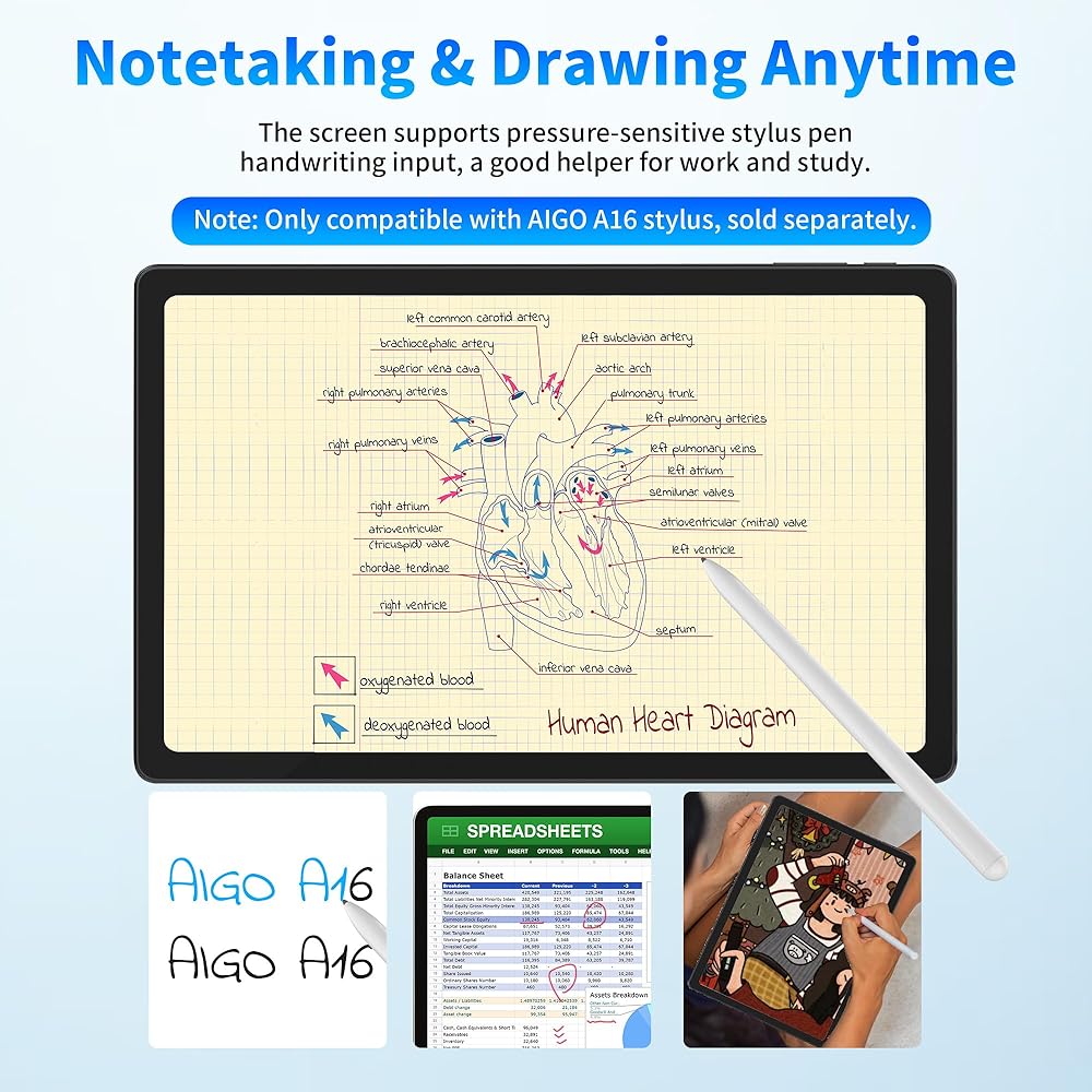 【𝟏𝟎.𝟔'' 𝐁𝐢𝐠𝐠𝐞𝐫 𝟐𝐊 𝐃𝐢𝐬𝐩𝐥𝐚𝐲】يميز aigo A16 Android 13 Tablet 2023 نفسه عن أجهزة Android اللوحية العادية مقاس 10 بوصات، ويتميز بحجم 10.6 بوصة فريد من نوعه شاشة K HD بدقة فائقة تبلغ 2000x1200، مما يسمح بتشغيل الفيديو أفضل تجربة الألوان والبصرية. رائعة لتحرير مقاطع الفيديو أو مشاهدة الأفلام.