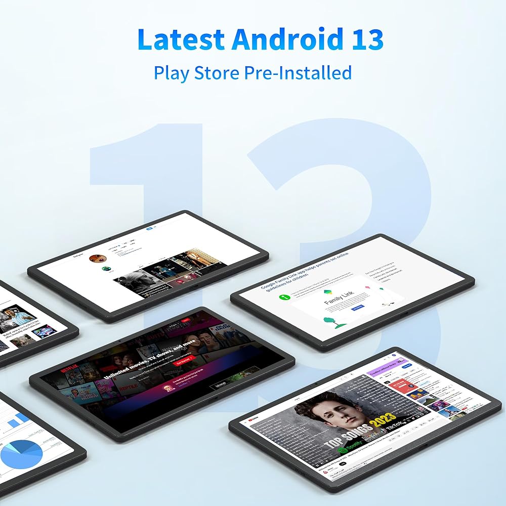 【𝗔𝗻𝗱𝗿𝗼𝗶𝗱 𝟭𝟯 𝗢𝗽𝗲𝗿𝗮𝘁𝗶𝗻𝗴 𝗦𝘆𝘀𝘁𝗲𝗺】 يضمن نظام Android 13 الحديث المزود بشريحة 8 النواة التبديل بين المهام المتعددة بسهولة وتشغيل التطبيق. إنها مثالية لكل من العمل واللعب. أفضل جهاز لوحي لقراءة الكتب وممارسة الألعاب ومشاهدة مقاطع الفيديو.