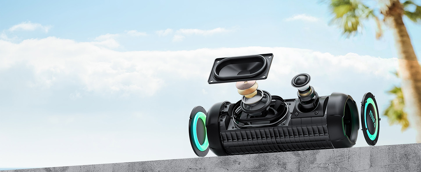 متينة - هيكل عالي القوة، مستوى IP67 مقاوم للماء والغبار يحول هذه السماعة المحمولة إلى مكبر صوت مناسب لجميع الأحوال الجوية، واستمتع بالموسيقى على الشاطئ أو بجانب حمام السباحة، فقط افعل ذلك كما تريد.