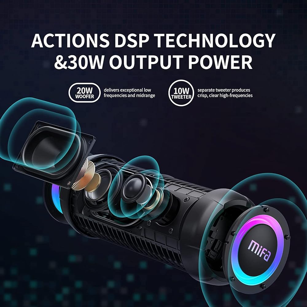 موثوقة - مكبر الصوت اللاسلكي MIFA WildRod المقاوم للماء يلبي جميع احتياجاتك مع بلوتوث 5.3، وفتحة بطاقة Micro SD، وشحن USB C، ووقت تشغيل طويل 12 ساعة، واتصالين للهاتف، وما إلى ذلك