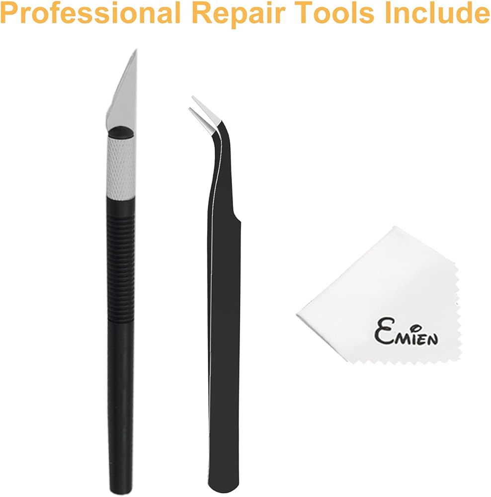 Come With Preinstalled Adhesive, Anti-Static Tweezers, Precision Knife Repair Tool Kit.
