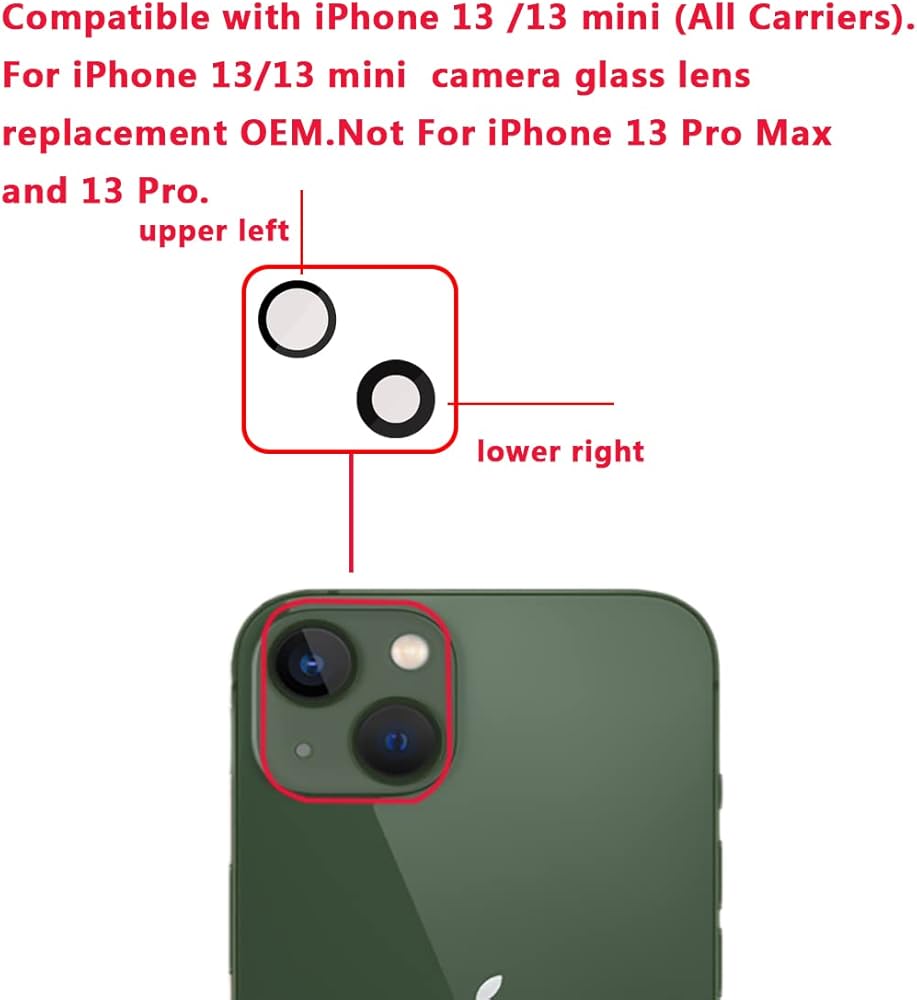 يمكنك توفير الوقت والمال باستخدام طقم الإصلاح هذا. إذا كان لديك عدسة كاميرا خارجية مخدوشة أو مكسورة، فهي مجموعة عدسات زجاجية بديلة جيدة للكاميرا لهاتف iPhone 13 6.1 بوصة/ 13 Mini 5.4 بوصة.