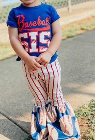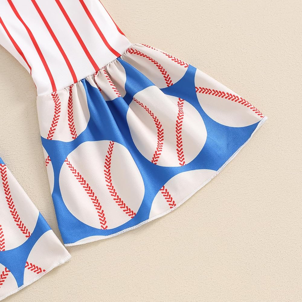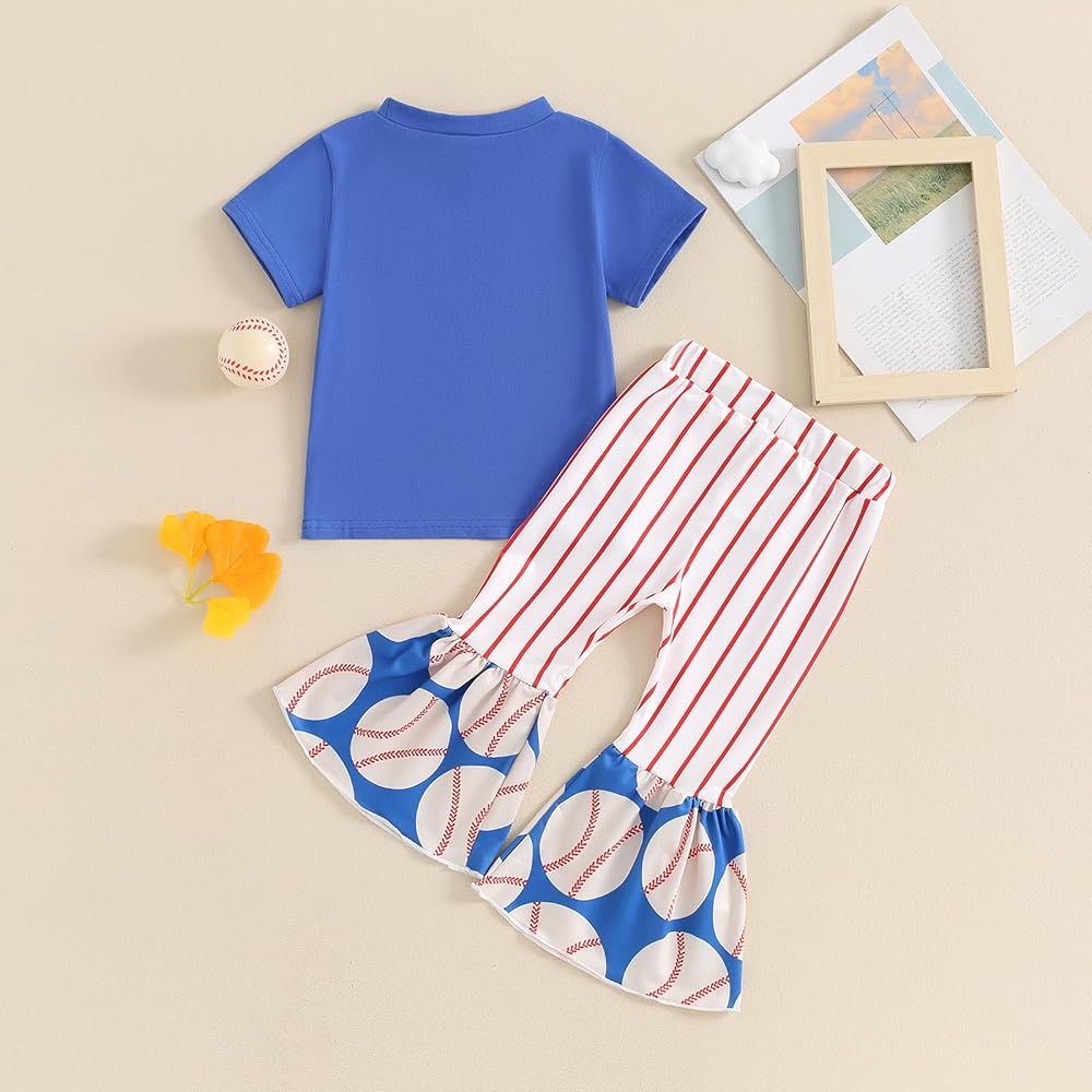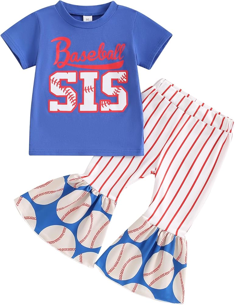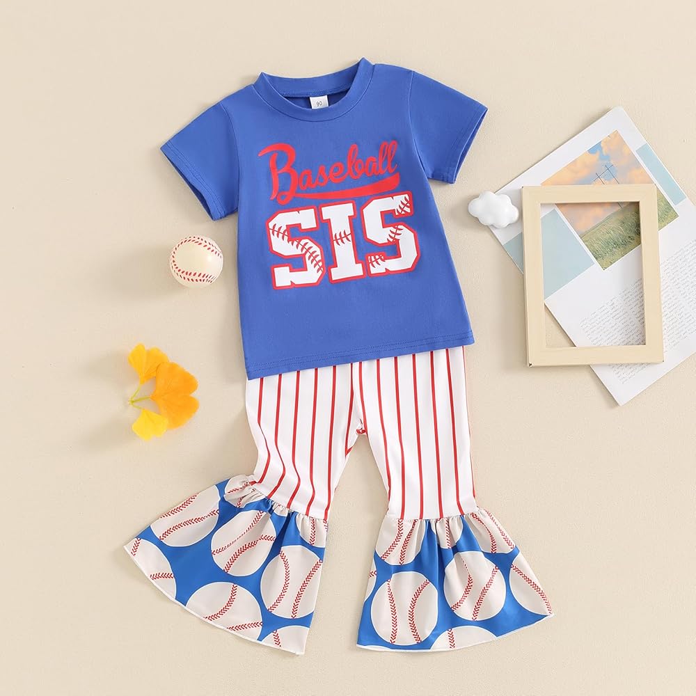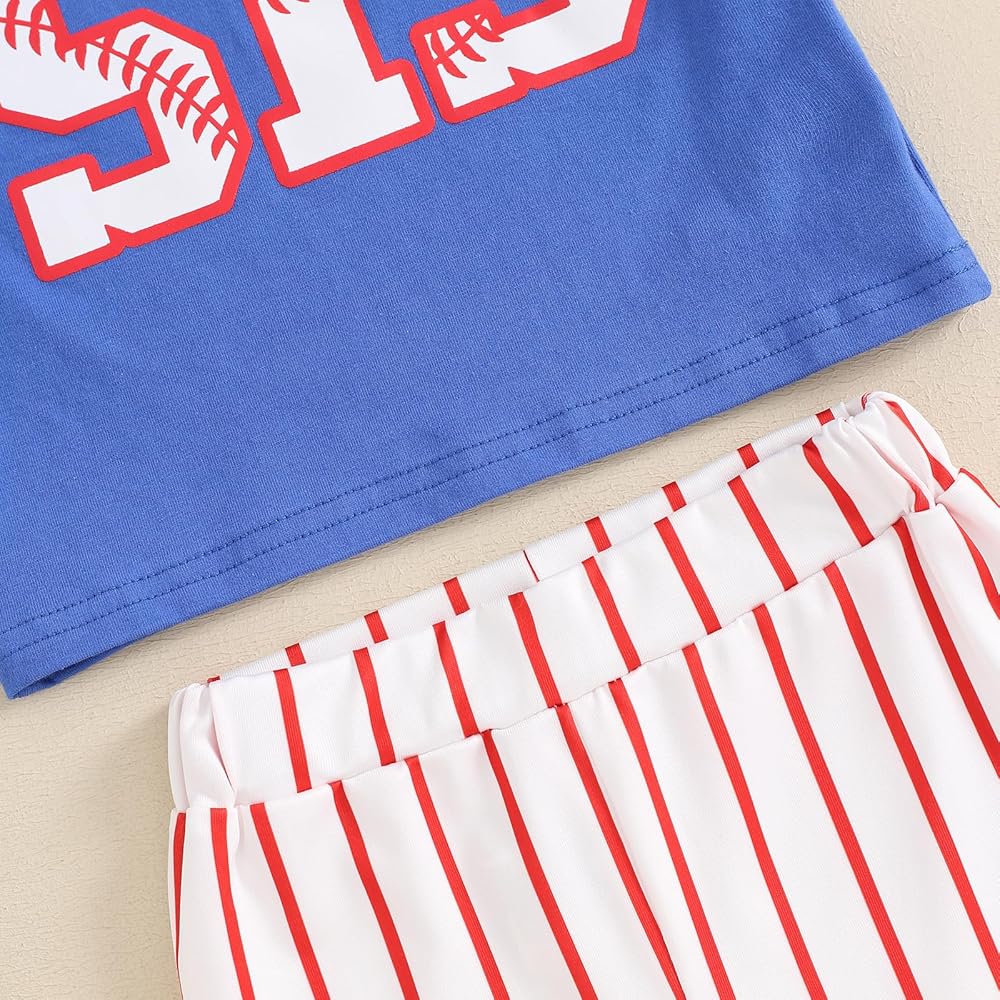 ⚾【التصميم】: ملابس بيسبول للفتيات الصغيرات، ملابس صيفية للفتيات الصغيرات، ملابس بيسبول للفتيات الصغيرات، تي شيرت بيسبول بأكمام قصيرة، تي شيرت بيسبول بأكمام قصيرة متطابق مع السراويل المخططة، مجموعة سفلية جرس للفتيات الصغيرات، أنيقة وفريدة من نوعها، زي بيسبول للأخت الصغيرة .