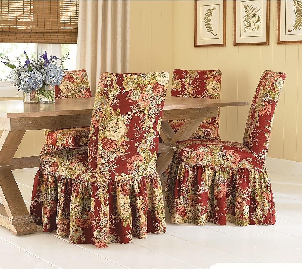 SureFit Ballad Bouquet من Waverly Slipcover (أحمر الخدود، كرسي الطعام)