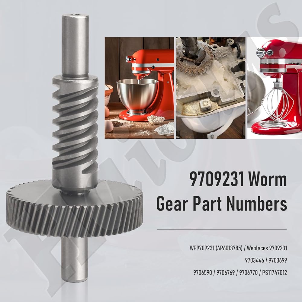 ★【9706529 Gear Part Numbers】-Gear for Kitchen Stand Mixer. Part Number: W11086780 9703543 9706529, Replaces: 1094120 9703543 AH774065 EA774065 WP9706529 1094120. ★【9709231 Worm Gear Part Numbers】-WP9709231 (AP6013785) replaces 9709231, 9703446, 9703699, 9706590, 9706769, 9706770, PS11747012.
