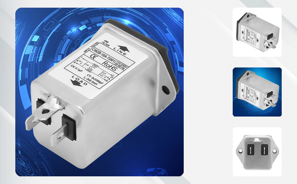 • مرشح EMI لمصدر الطاقة هو نوع من مرشح الترددات المنخفضة من نوع المفاعلة، يتم تركيبه عند مدخل مصدر الطاقة للمعدات الإلكترونية.