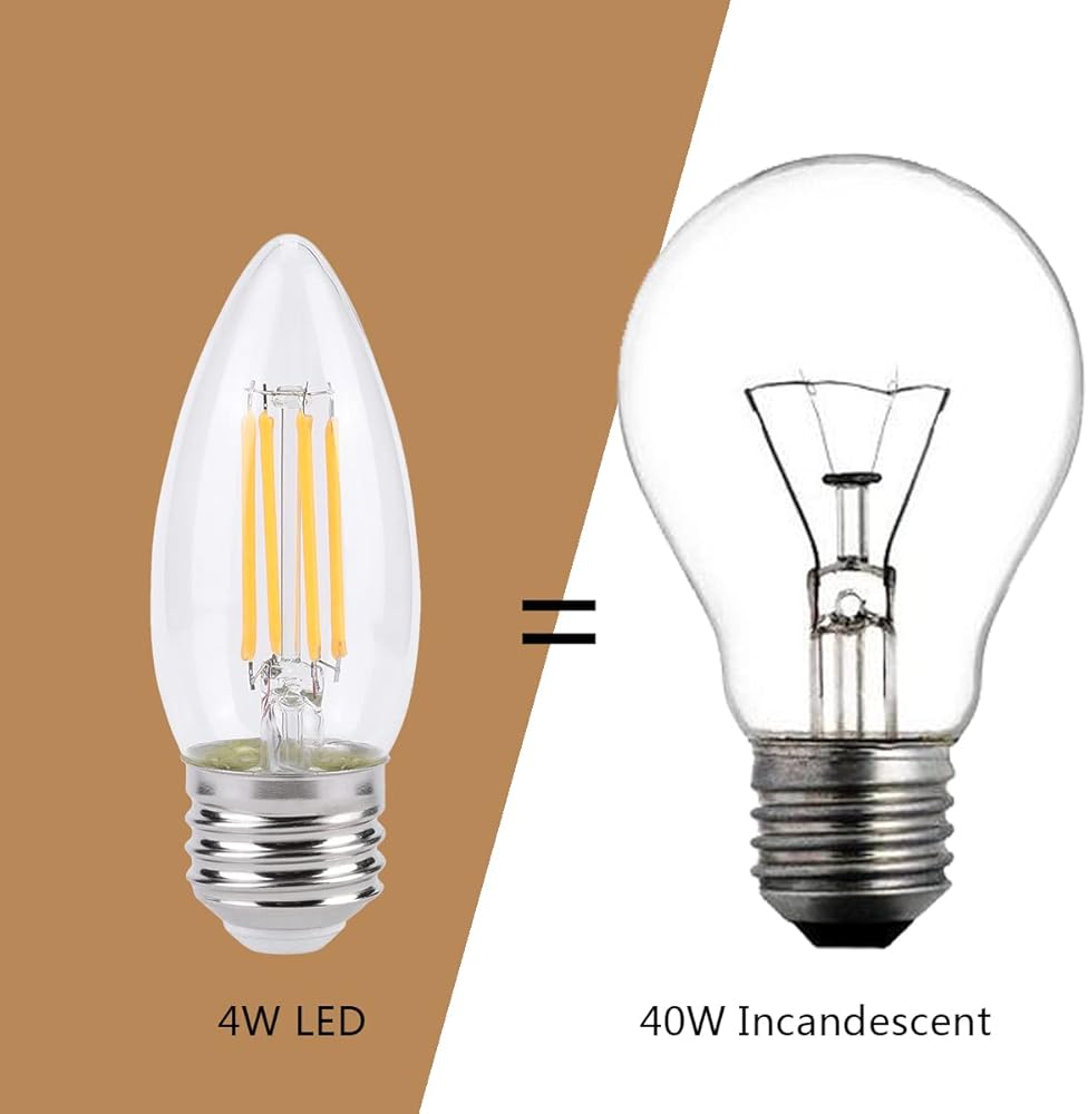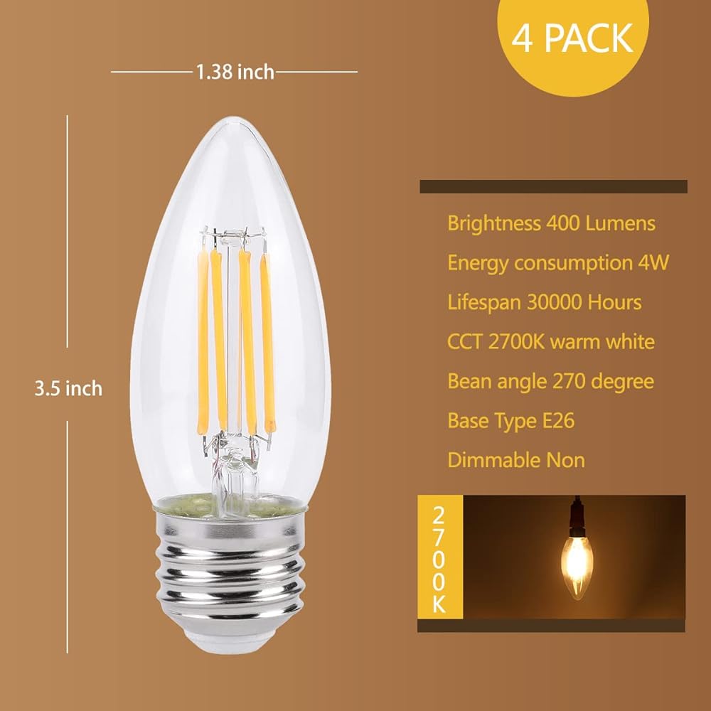 E26 الشمعدانات أدى المصابيح الكهربائية 4 واط (40 واط ما يعادل) أدى الثريا المصابيح الكهربائية 2700 كيلو الدافئة الأبيض الثريا الزخرفية شمعة ضوء لمبة السقف مروحة لمبة غير عكس الضوء 4pack