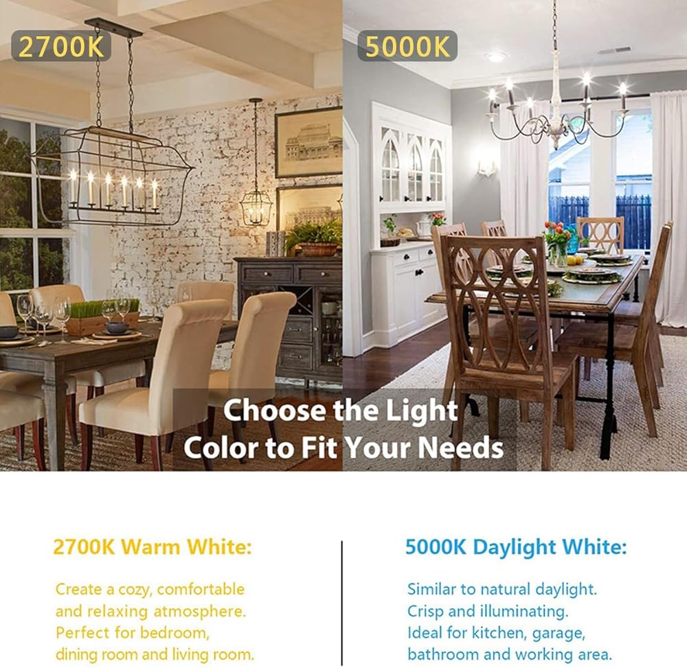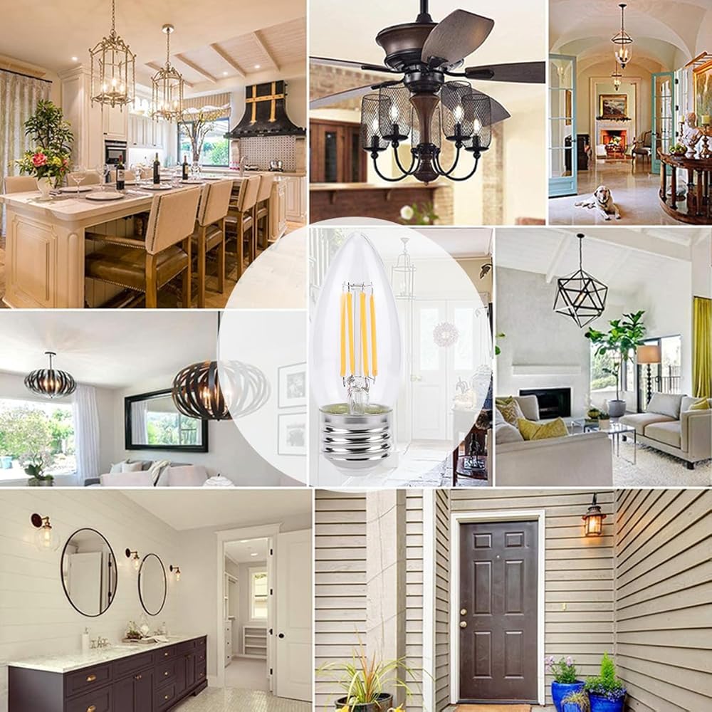 【مصباح LED E26】مصباح شمعدان E26، قاعدة E26 القياسية تناسب قاعدة E26 الأمريكية العالمية الموجودة بشكل جيد ومصابيح الثريا المثبتة مباشرة.