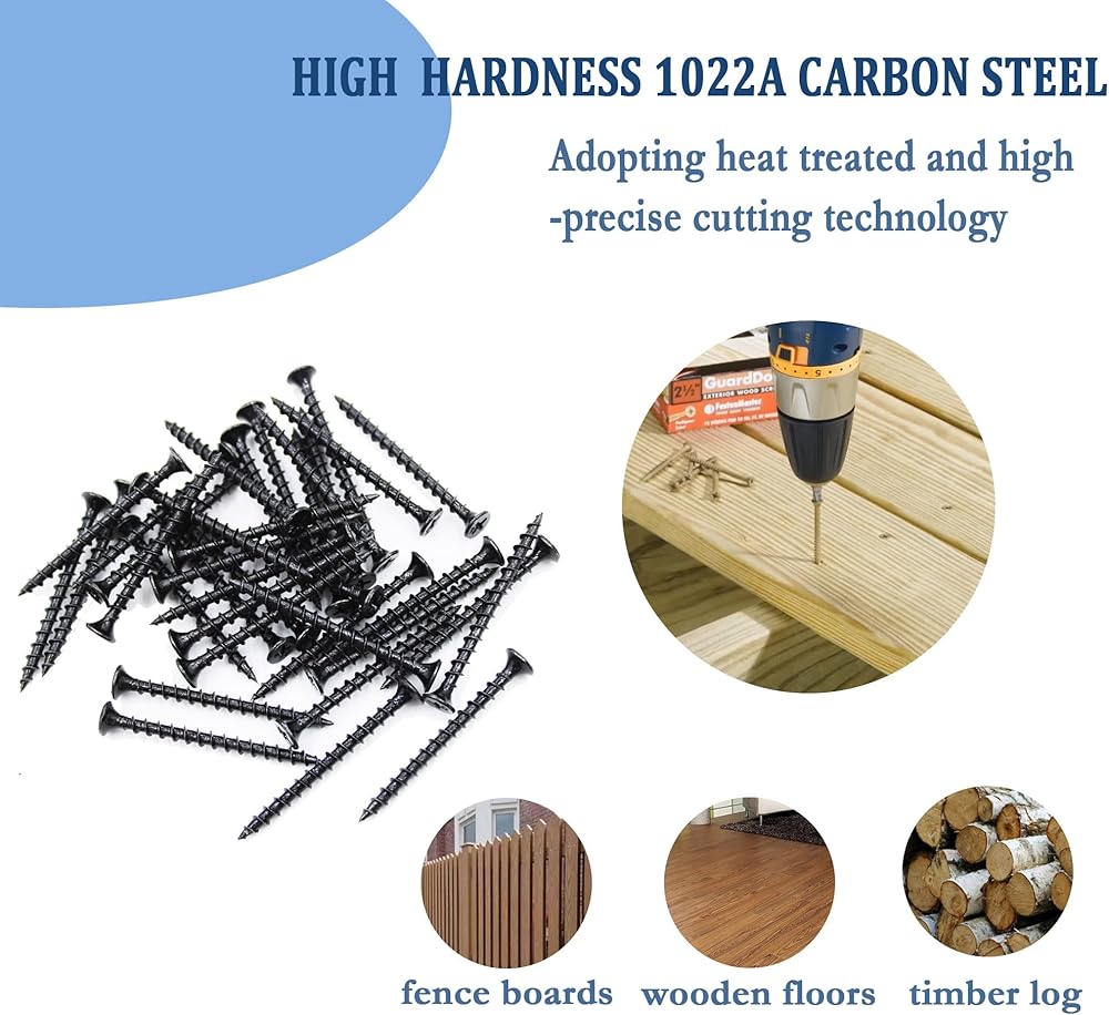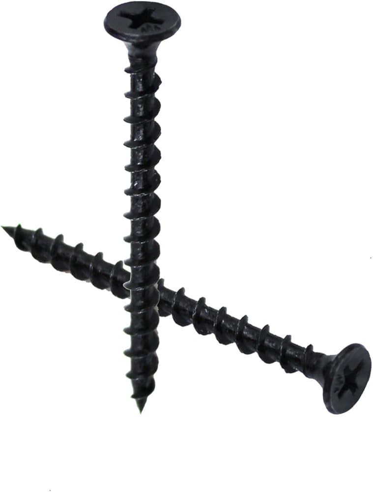 Phillips Flat TwinFast Wood Screws,#8 x 2" Wood Screw Black Phosphate Coated Stainless Flat Truss Head Fast Self Tapping Drywall Screws 80PCS: These screws are designed to provide a quick and easy installation for drywall, wood, or other thin sheet metal applications. They feature a flat head with a truss design that allows for a flush fit in the surface. The black phosphate coating provides a corrosion-resistant finish. The screws are made of stainless steel for durability and have a twinfast thread design that cuts installation time in half. The package includes 100 screws.