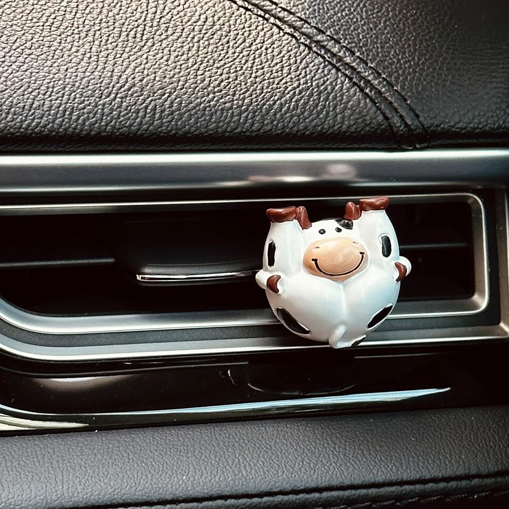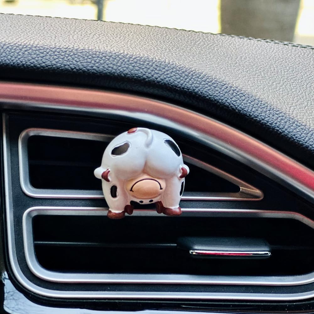 معطر هواء للسيارة على شكل بقرة مضحكة لتزيين فتحة تهوية السيارة مع قرص برائحة طبيعية وإعادة التعبئة، والعلاج العطري للسيارة والديكور الداخلي