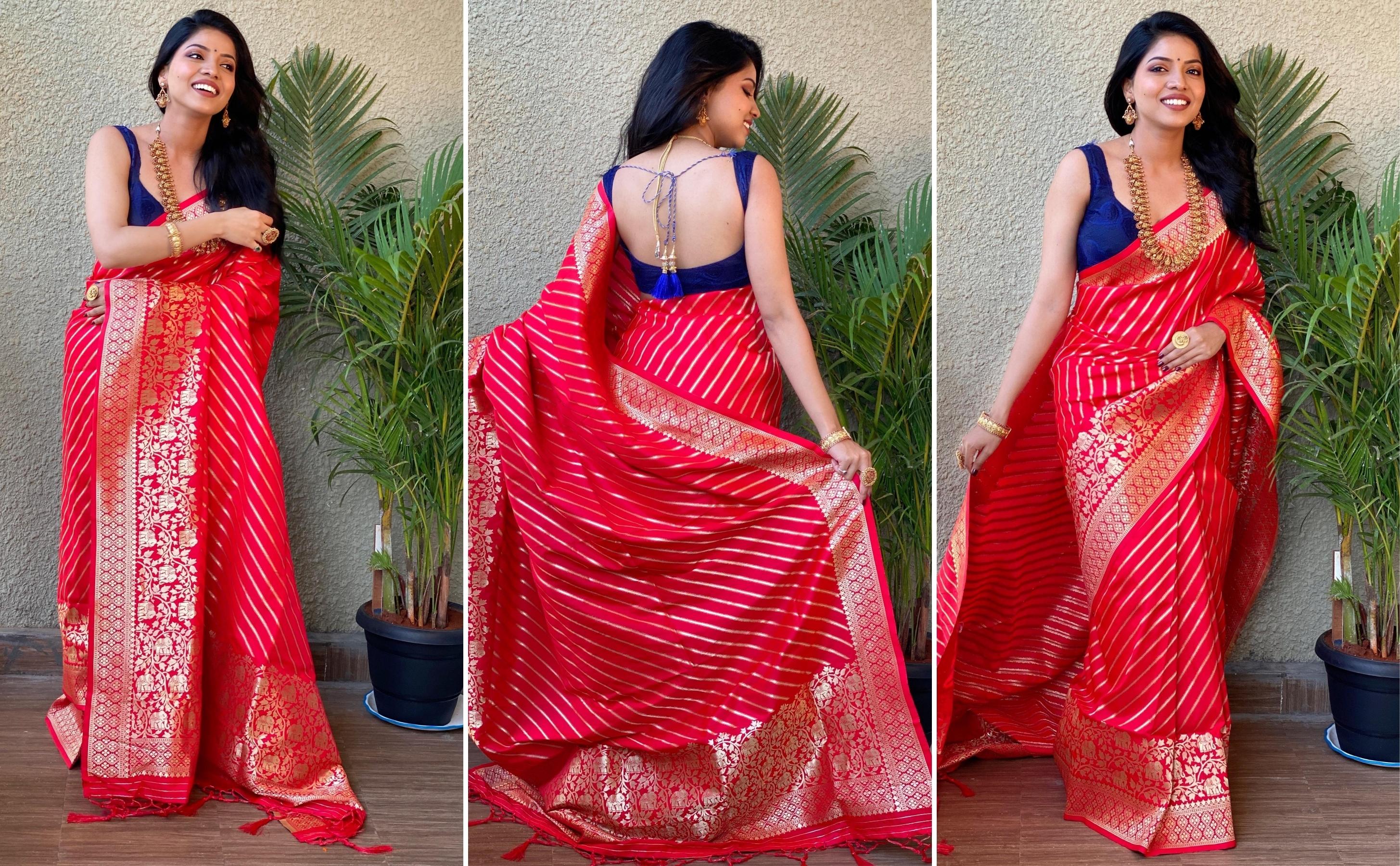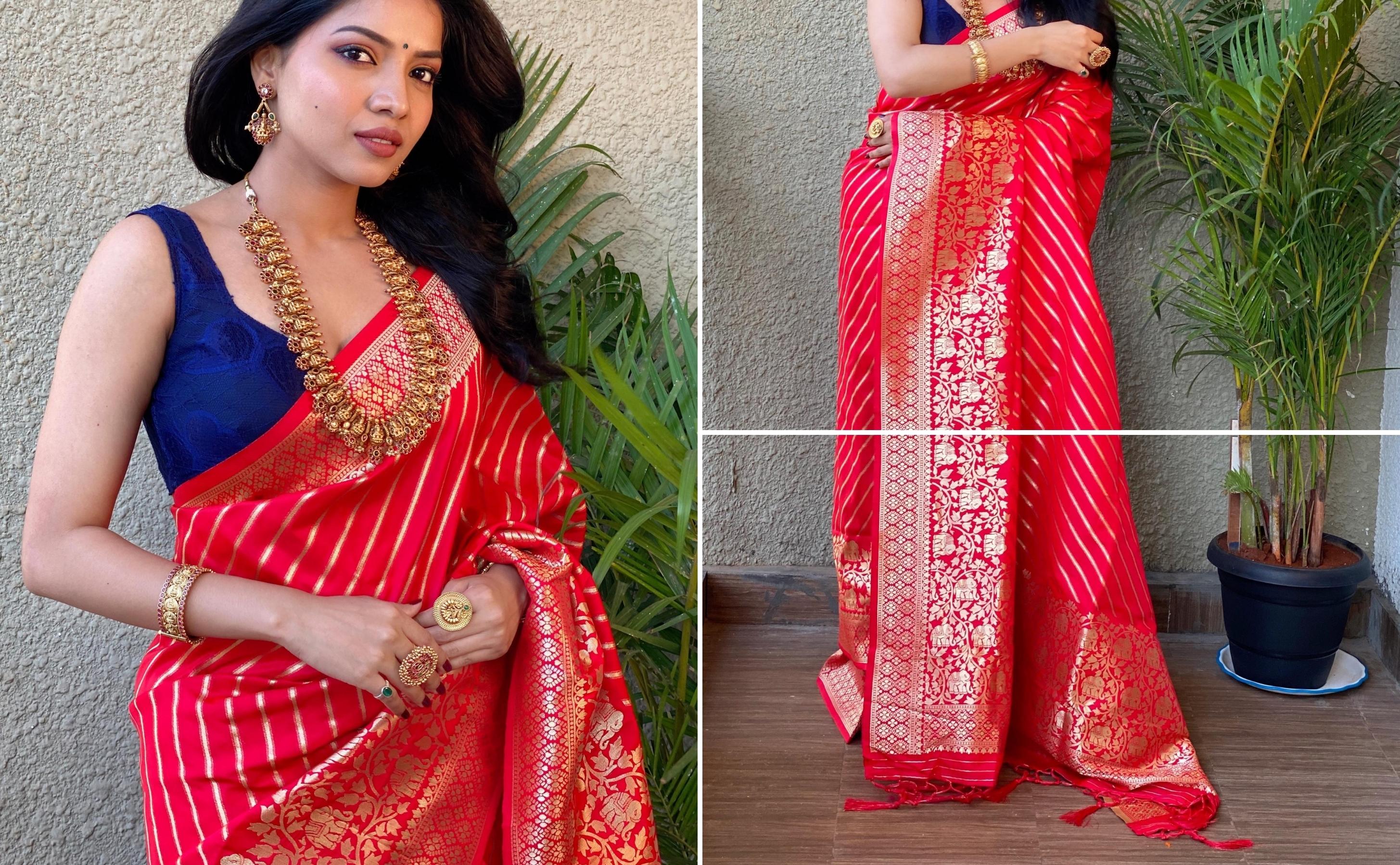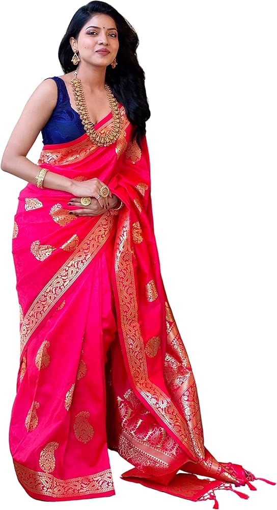 ساري حريري فني للنساء ساري هندي تقليدي من زاري نقي للنساء مع بلوزة غير مخيطة