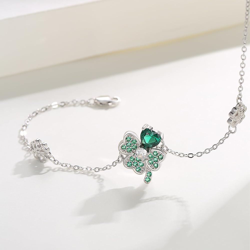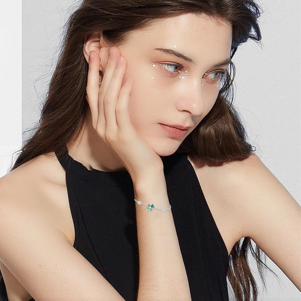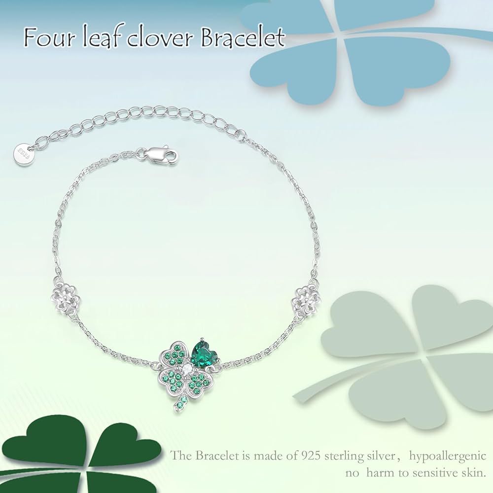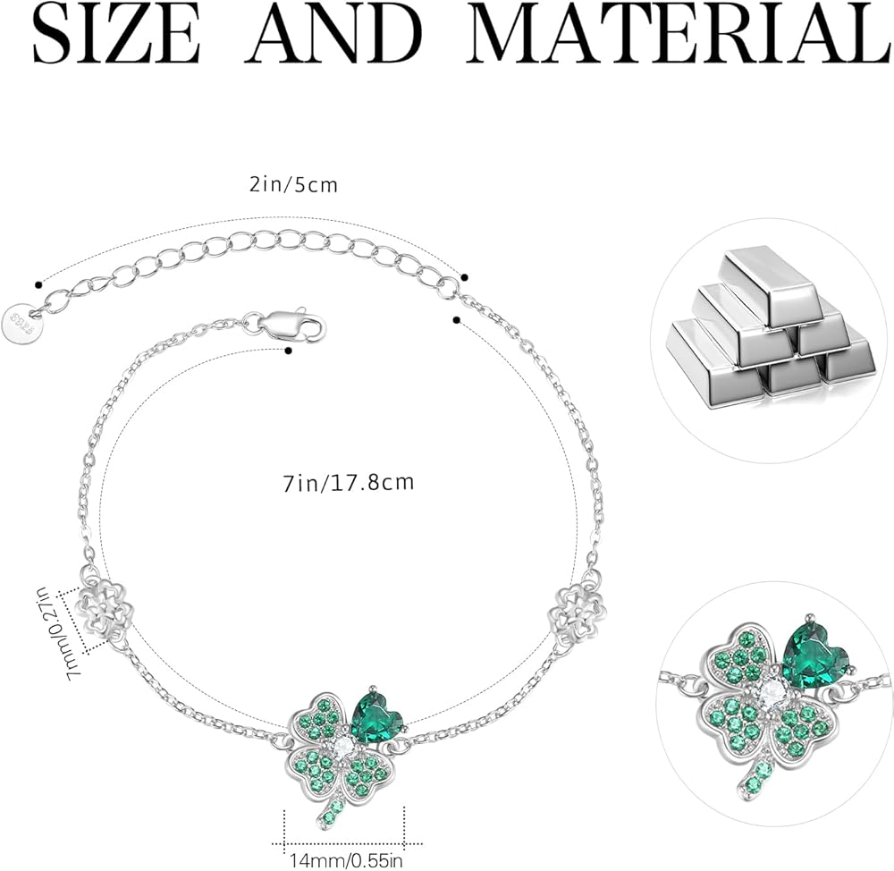 ☘【Bracelet material】Our lucky clover bracelet is made of 925 sterling silver. It's colorfast, lead-free, nickel-free, and especially suitable for sensitive skin. The four-leaf clover in the middle is composed of green zircon, full of vitality and vitality, and there are two four-color flowers on both sides, which is very suitable for young people.