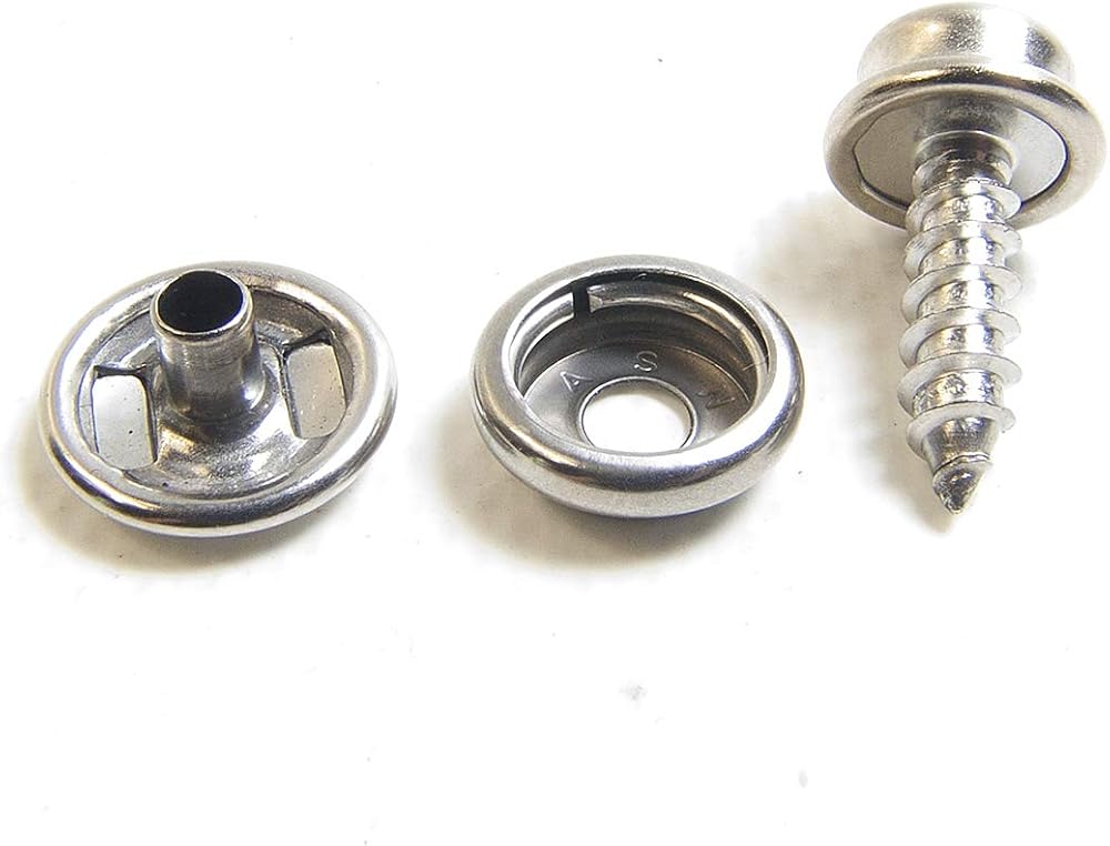 Brand new sets of Stainless Steel Caps, Sockets & 5/8" Oversized Screw Studs. The Stud is Nickel Plated Brass and the Screw is #10 Stainless Steel. Manufactured from high quality 304 stainless steel. These snaps are Fasnap Brand and will last for years once set properly. When purchasing snaps be sure to look for the Fasnap Brand or DOT Brand names stamped into the socket. This will assure you are purchasing a quality product. Questions? Drop us an e-mail here on Amazon Northwest Tarp & Canvas - Bellingham, Washington