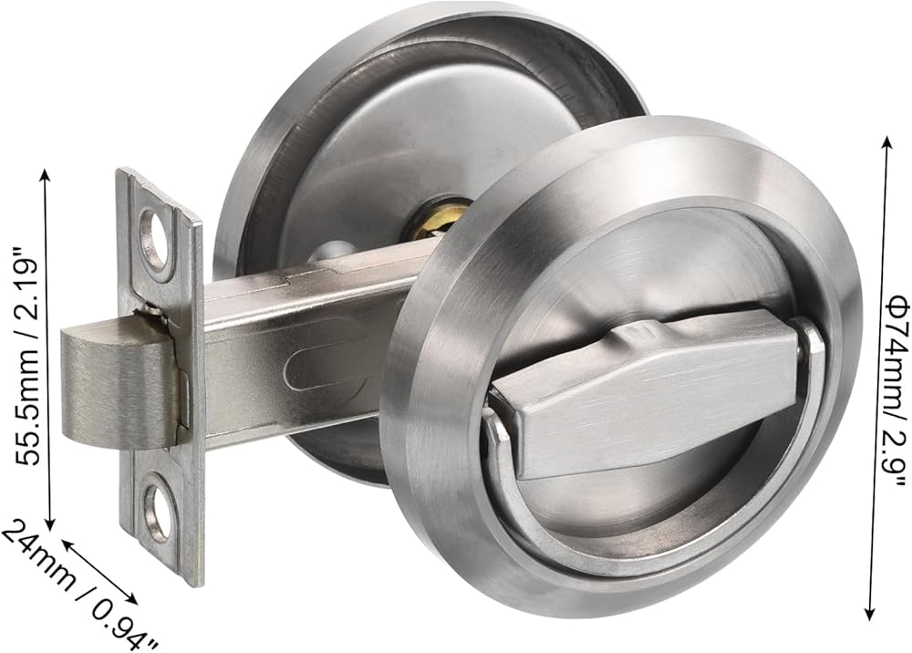 المقاس: قطر مقبض الباب الدائري المجوف 74 مم/ 2.9 بوصة. ويبلغ حجم الثقب المركزي للبرغي 42 مم/ 1.65 بوصة. مناسبة للوحة الباب بسُمك 35-55 مم/ 1.38-2.16 بوصة. (ملاحظة: يمكن قطع البراغي وفقًا لسمك لوحة الباب)