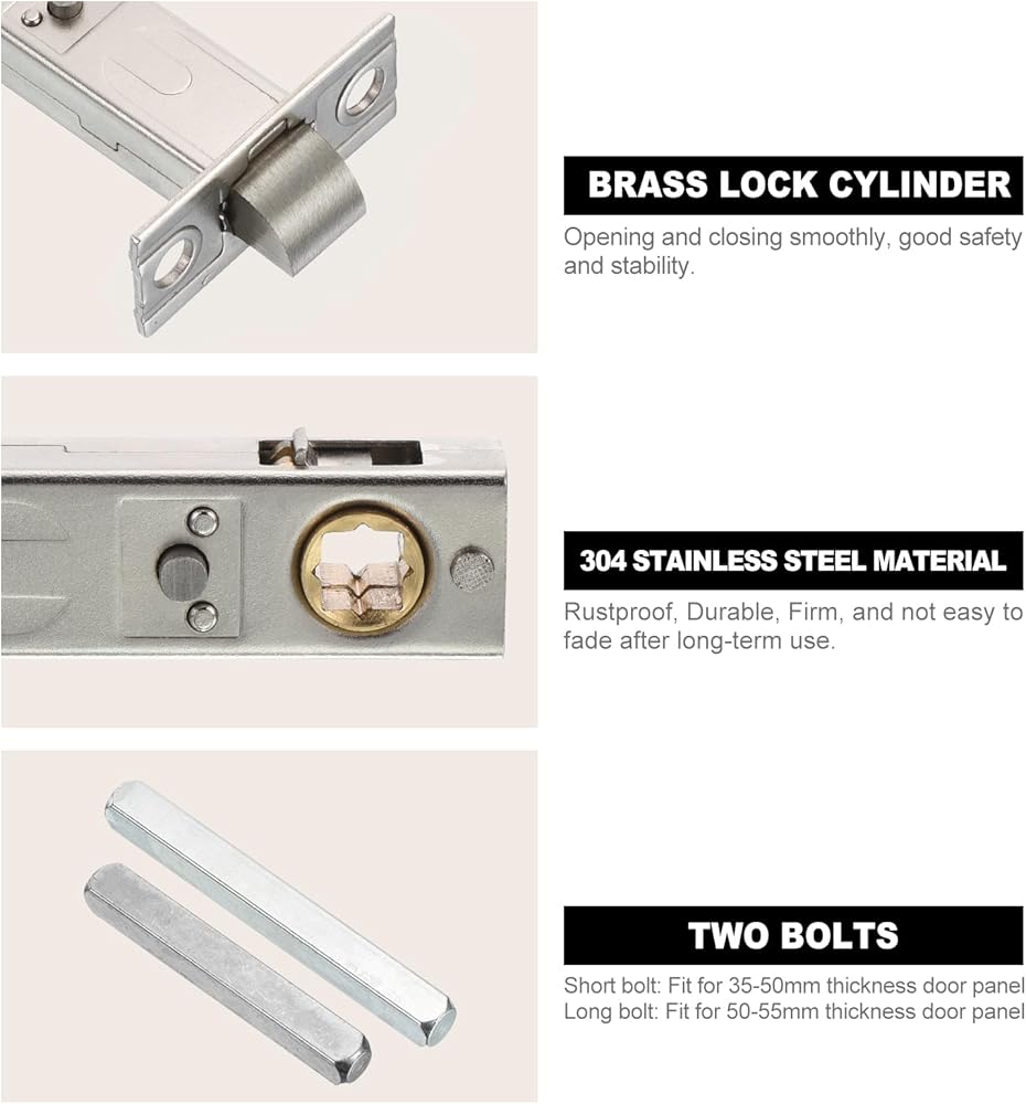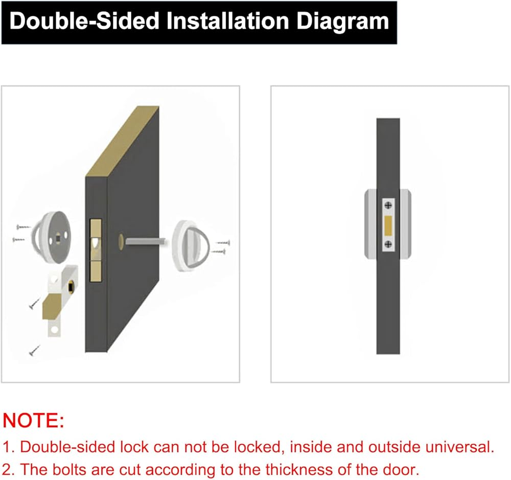 سهل التركيب والاستخدام: يتم تثبيت قفل الباب غير المرئي باستخدام البراغي المرفقة. يتم تركيبه بشكل أساسي على الأبواب بسمك 35-55 مم، يرجى قياس المواصفات بعناية قبل الشراء للتأكد من أنها مناسبة لسمك بابك. ما عليك سوى تشغيل مقبض الباب لقفل أو فتح الباب غير المرئي بسهولة بدون مفتاح.