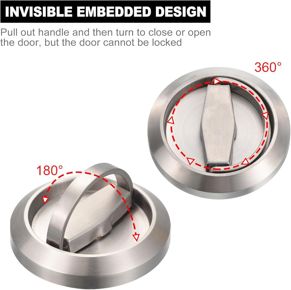 تصميم قفل على الوجهين: يمكن تشغيل المقبض من الداخل والخارج لإغلاق الباب، ولا توجد وظيفة قفل عكسي. يمكن تركيب مزلاج صغير بالداخل إذا تم تركيبه على باب غير مرئي يفتح للخارج. يتمتع كلا الجانبين بتصميم مقبض يمكن أن يصمد، ويمكن إخفاء المقبض القابل للدوران في منتصف مقبض الباب، وهو أمر بسيط وأنيق.