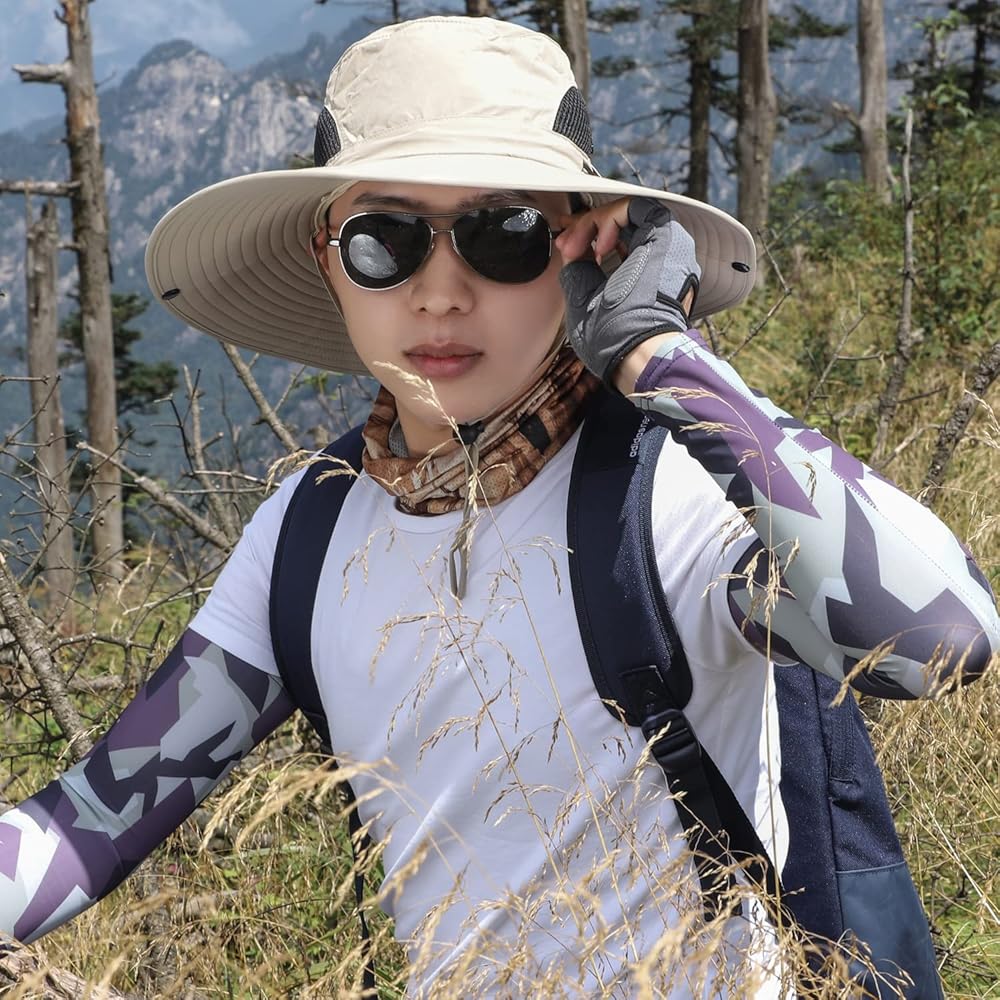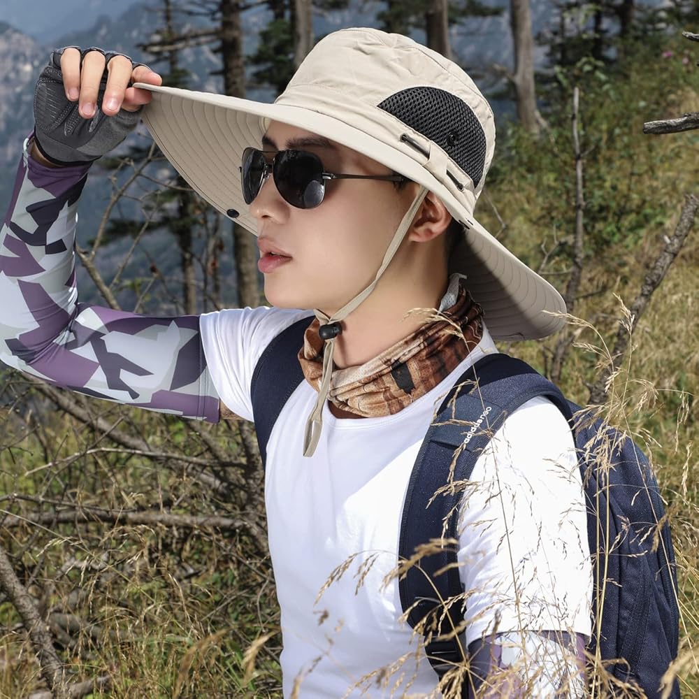 نسيج فاخر:: نسيج بوليستر عالي الجودة طارد للماء، جيد التهوية، قبعات الشمس للرجال والنساء يمكن طيها بنصف أو 1/4 دون أن تشغل مساحة، سهلة الحمل داخل حقيبتك، سريعة الجفاف، مسامية، قابلة للغسل اليدوي ارتديه، يمكنك السفر بسعادة مع عائلتك وأصدقائك حتى في الصيف الحار.