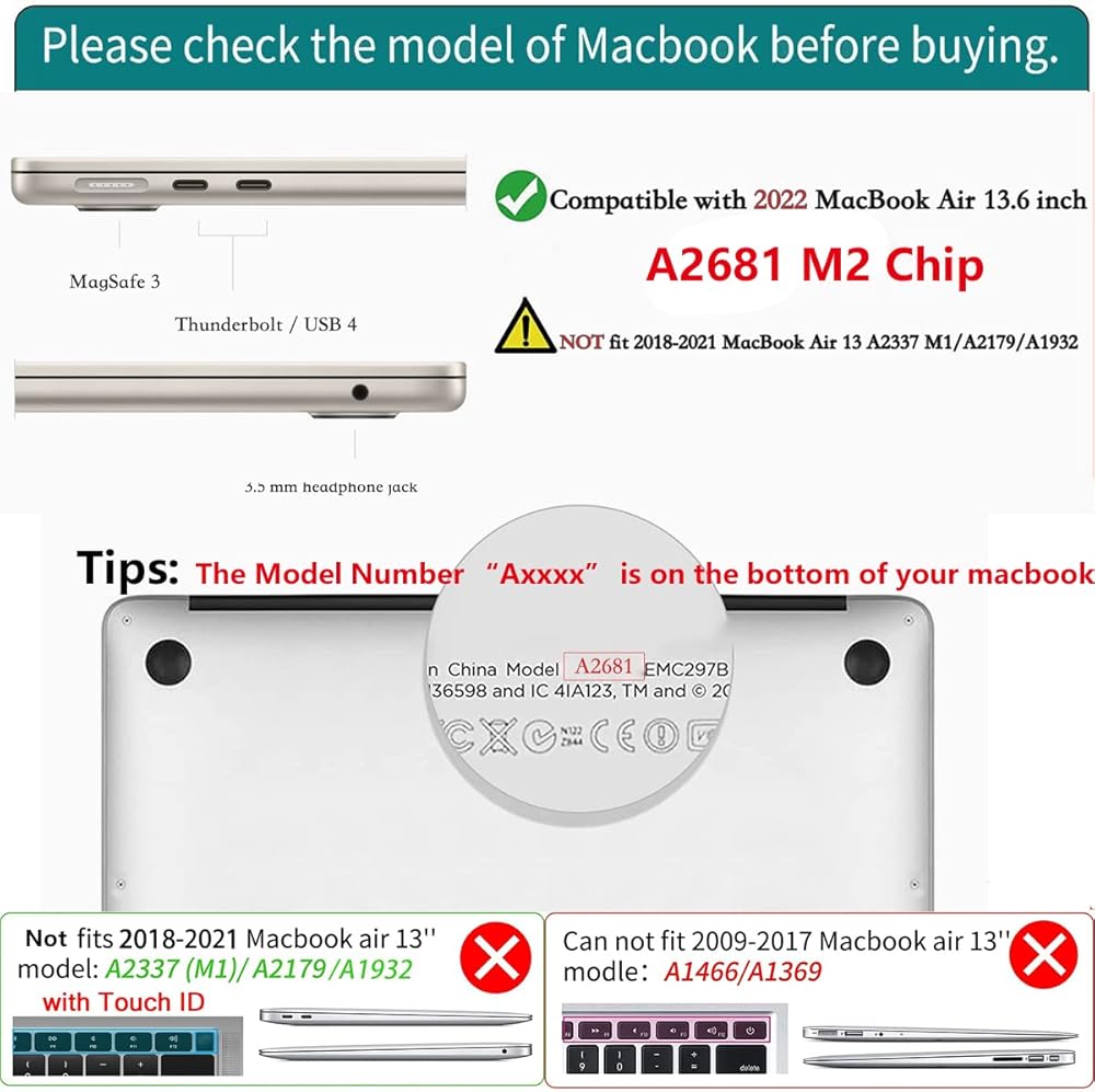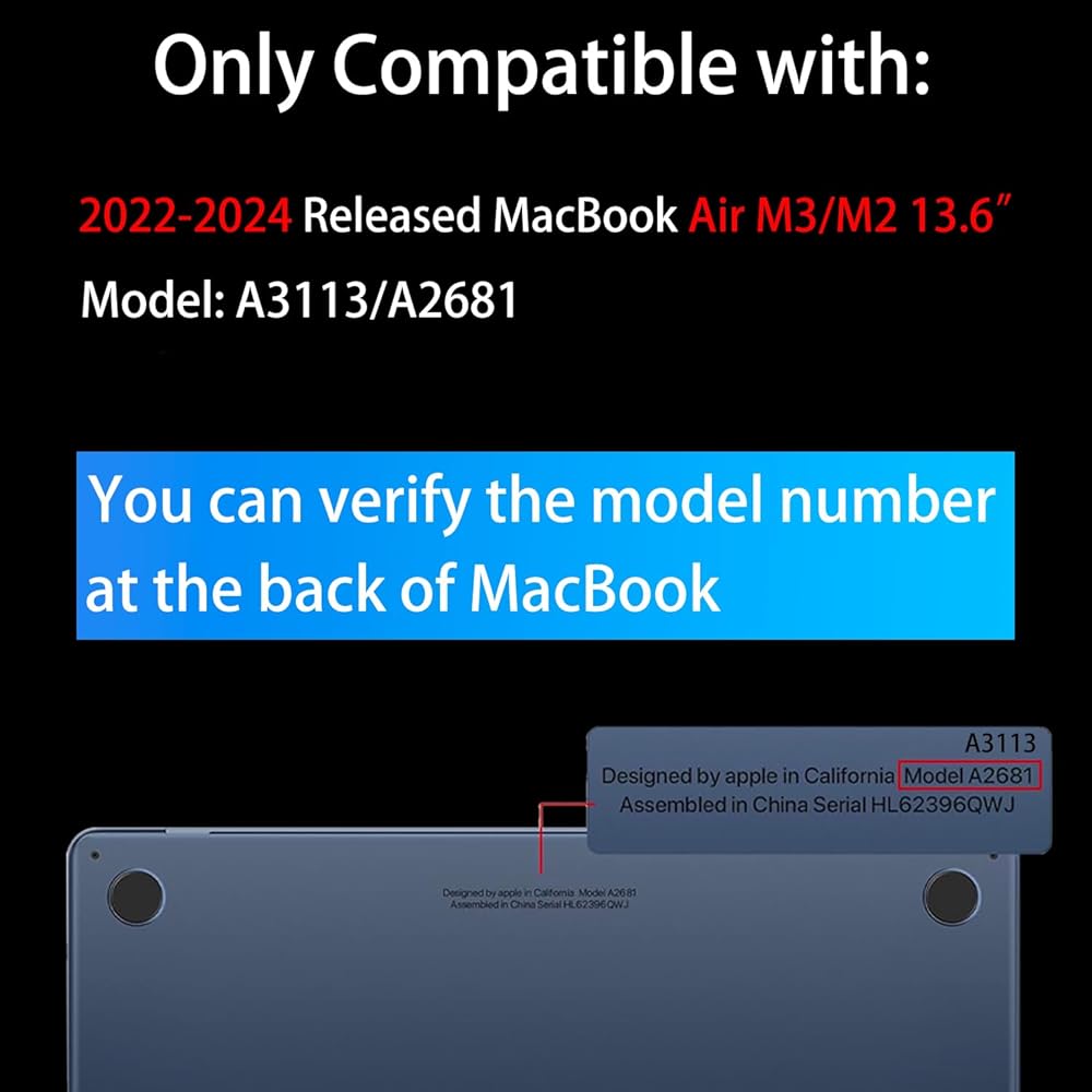 [نموذج متوافق] - حافظة مصممة لجهاز MacBook Air 13.6 بوصة إصدار 2022 M2Chip، موديل A2681. يرجى التفضل بالتحقق من رقم الطراز الخاص بك قبل الشراء.