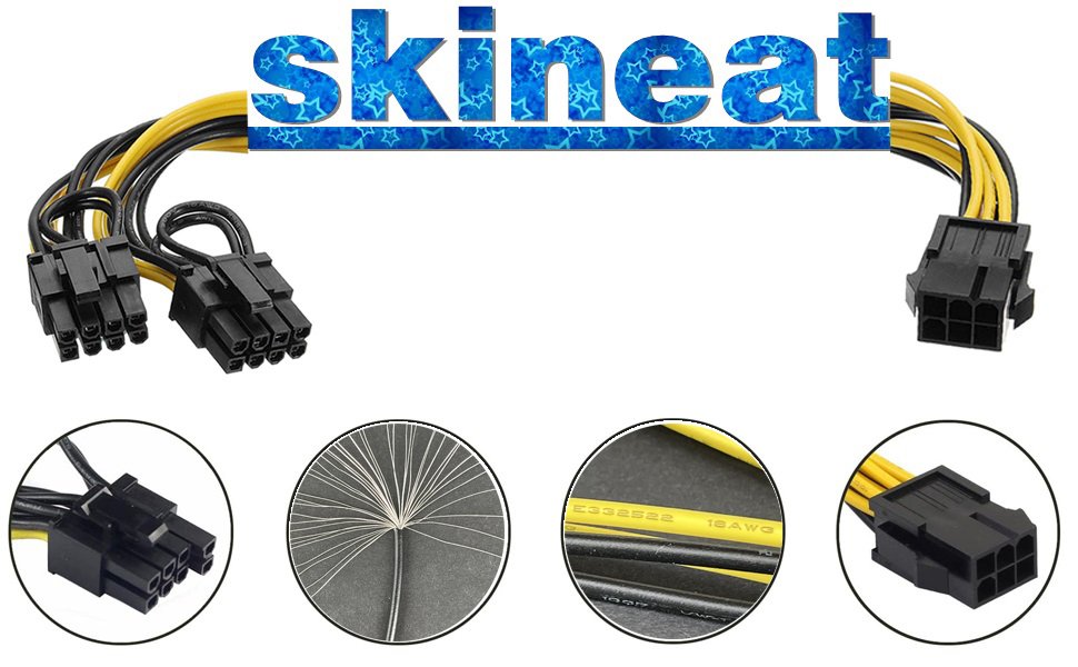 موصل A - وحدة معالجة الرسومات 6 دبوس أنثى؛ موصل B - 2 × Pcie 8 دبوس (6+2) دبوس ذكر؛ نوى نحاسية جديدة أصلية، بدون مواد معاد تدويرها