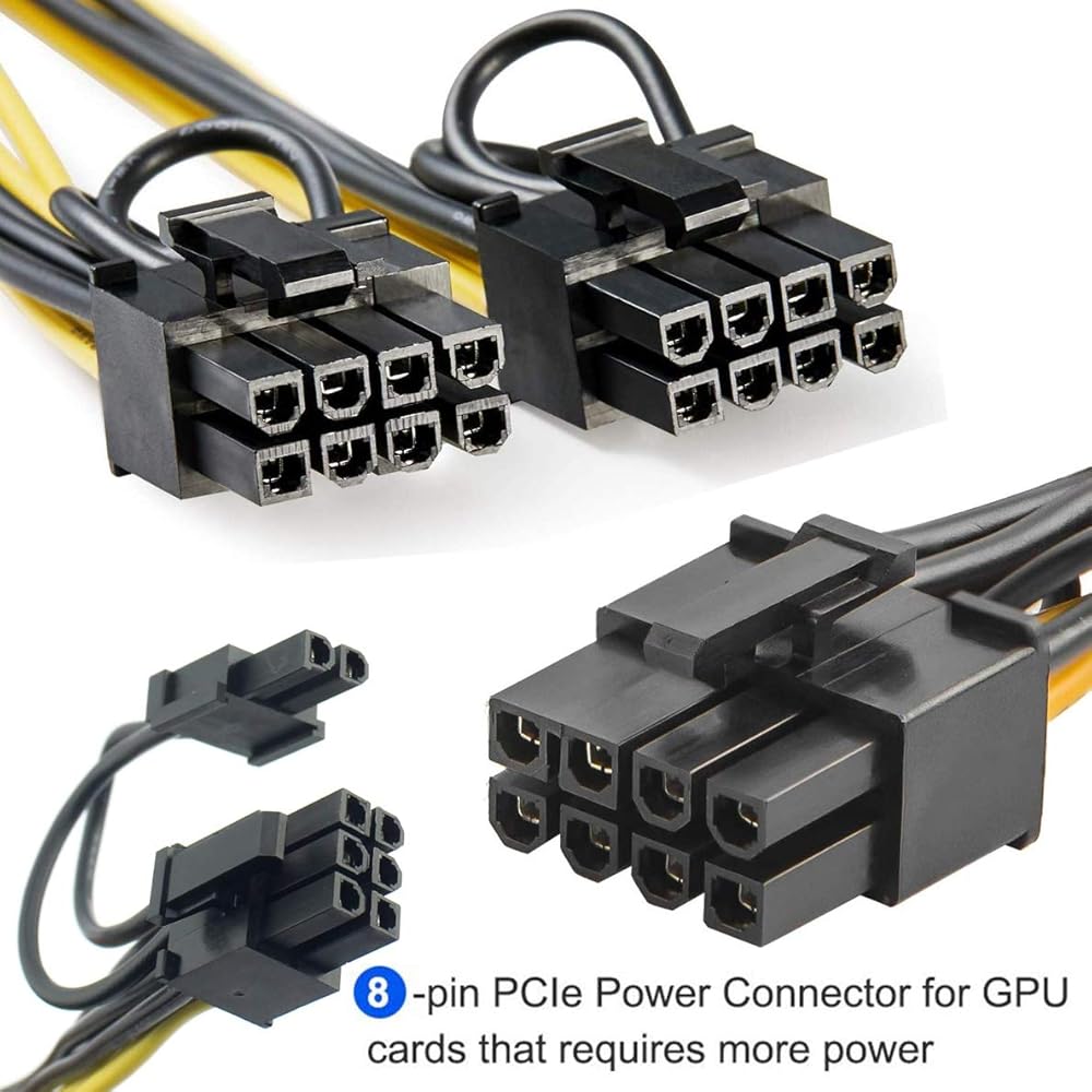 يحتوي كابل طاقة بطاقة الرسومات القوية على موصل PSU PCIe ذكر ذو 8 سنون مع قضبان ذات مفاتيح وموصل أنثى PSU PCIe ذو 6 سنون مع مزلاج للاتصال الآمن في كل طرف لمنع انقطاع الاتصال العرضي