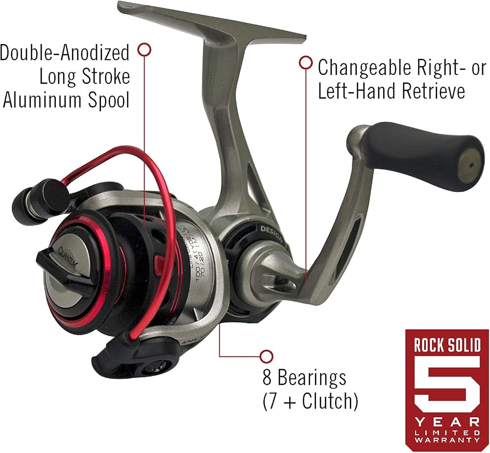 قوية وموثوقة: بكرة كوانتوم درايف الدوارة هي بكرة صيد مقاس 20 تتميز بسلك كفالة من الألومنيوم المؤكسد، وبكرة مزدوجة مؤكسدة مشكلة ومصنوعة آليًا والتي ستدوم حتى أكبر الأسماك. تم تصميمه بشكل مريح باستخدام أداة استرجاع قابلة للتغيير باليد اليمنى أو اليسرى و9 محامل (8 + قابض) من شأنها تعزيز أي رحلة صيد بسبب قوتها وموثوقيتها