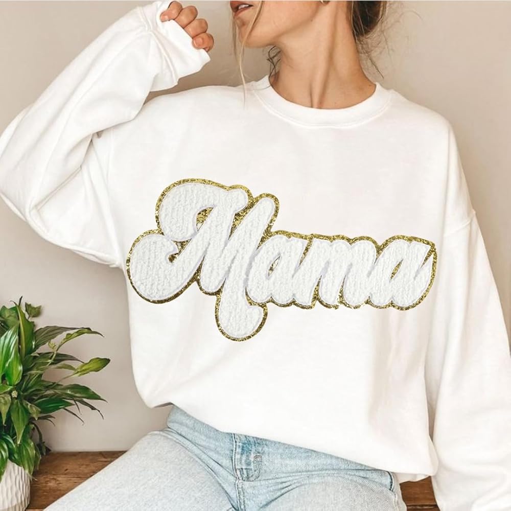 Quantity and Size:this glitter gold trimmed iron on patches for clothing include 1 pieces 5" x 9.7"(WxL) white Mama patch, colorful and vivid, they can meet your creative need to create or decorate a variety of crafts projects, and can share with friends