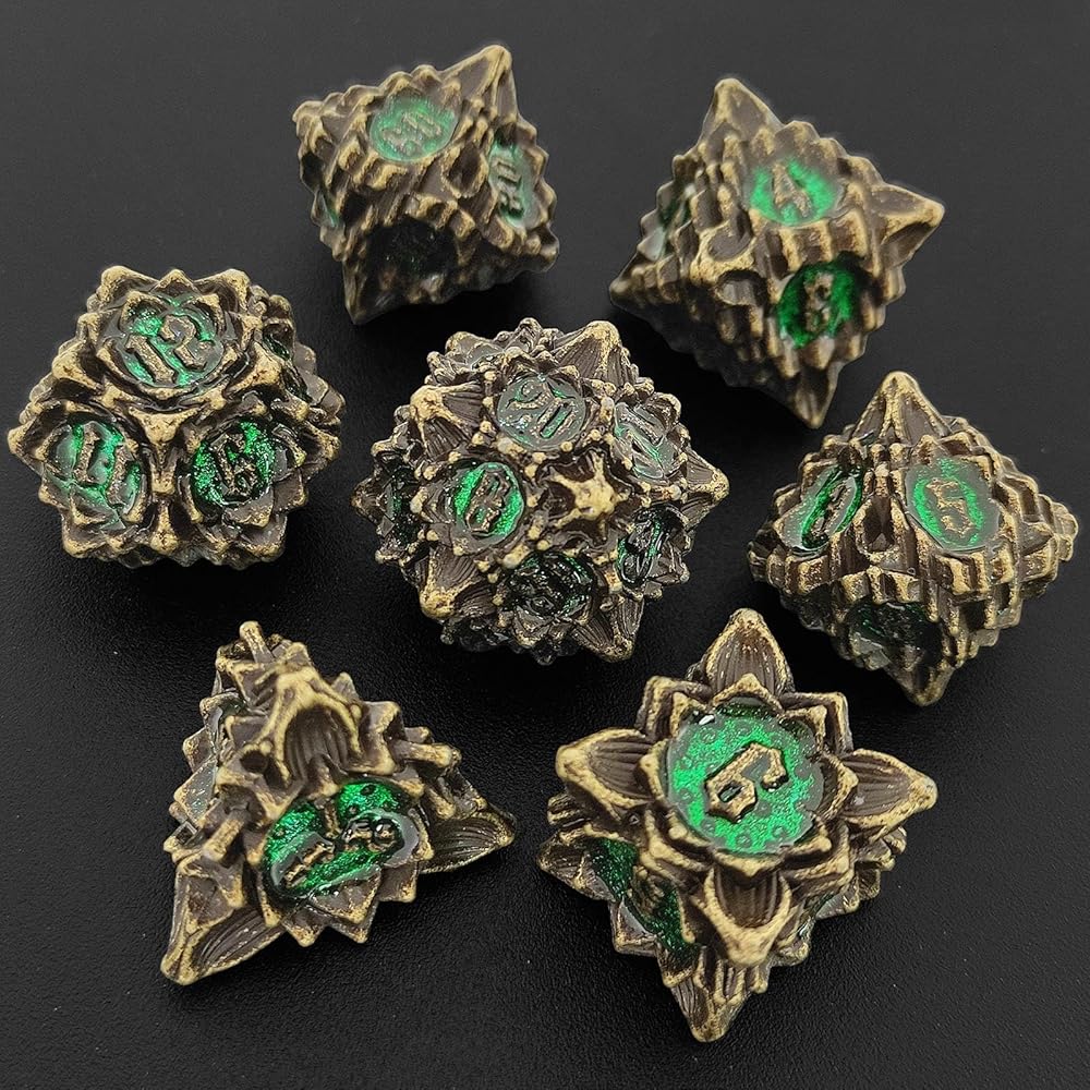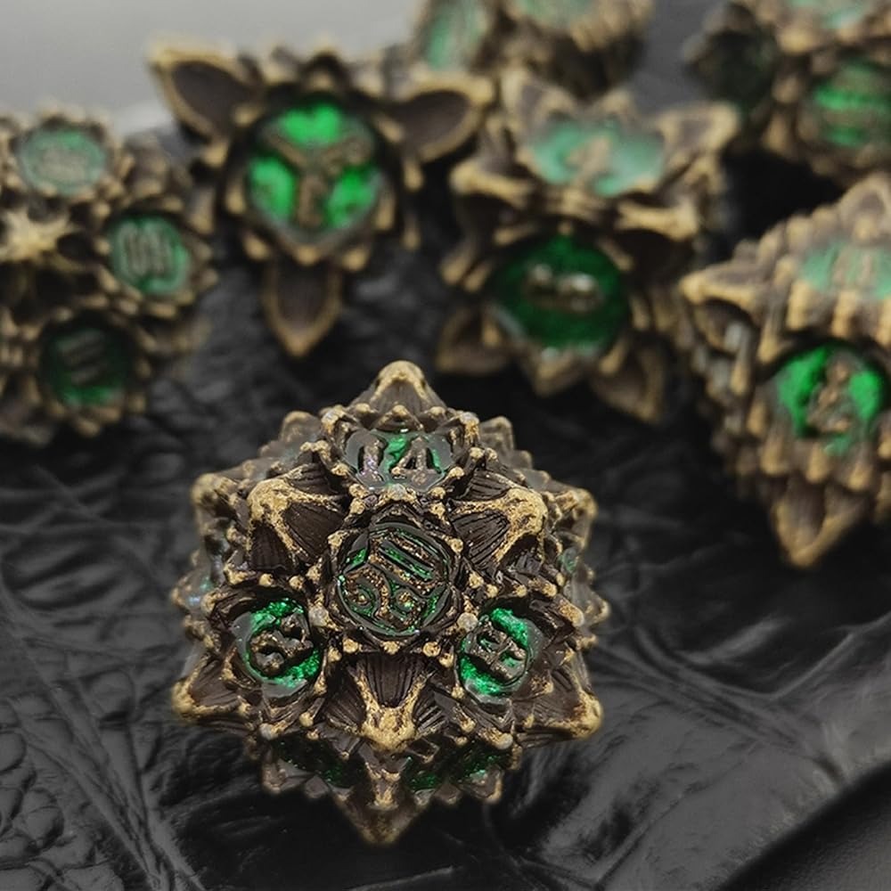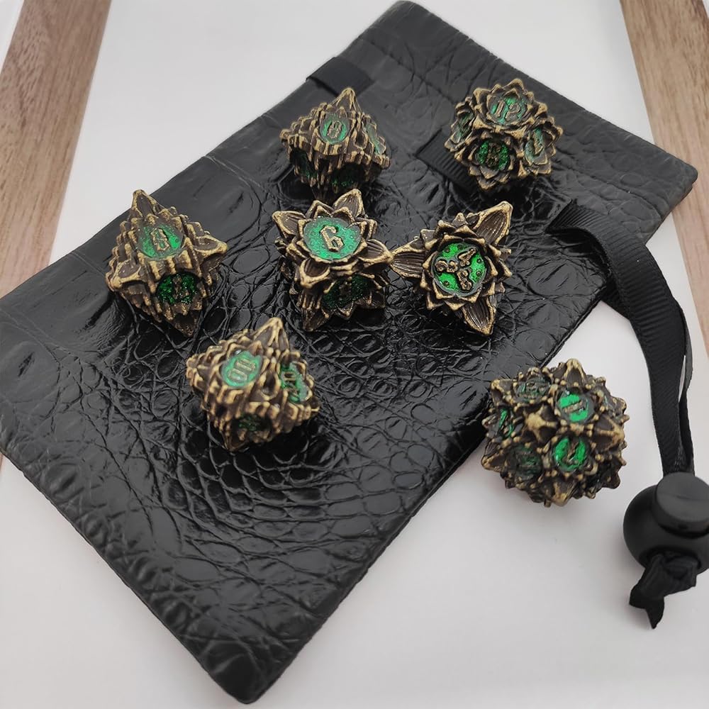 • 【DICE FEATURES】: DND metal solid dice,Lotus element pattern design, elegant and beautiful appearance, beautifully carved pattern, first-class feel and appearance, bring you a different experience, worthy of collection of gifts