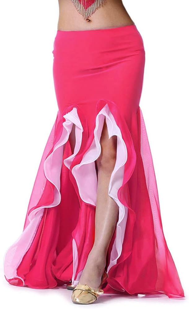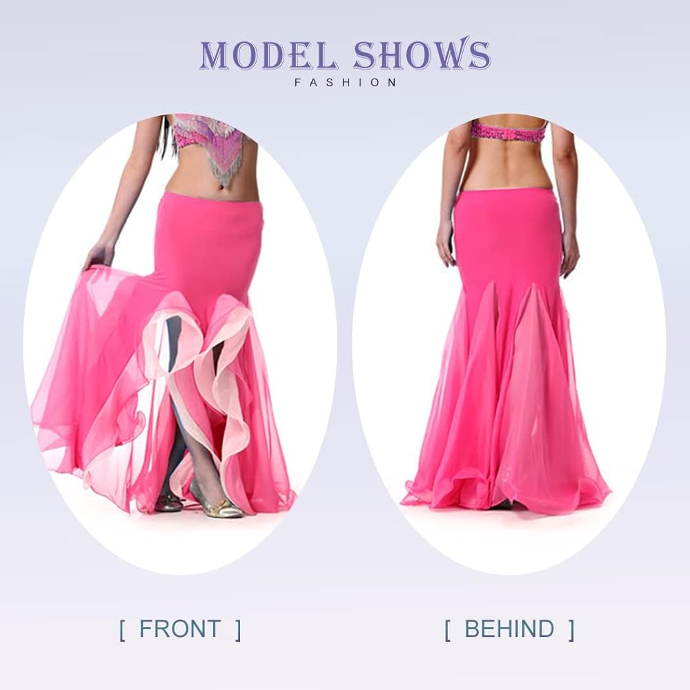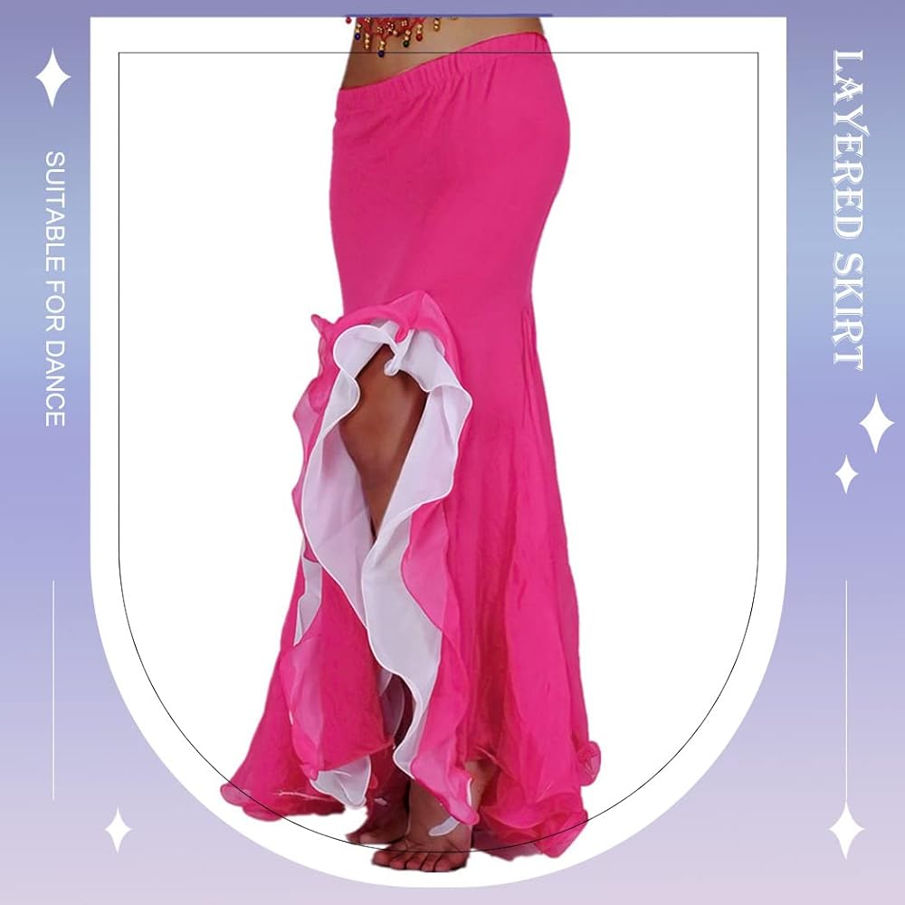 تنورة رقص شرقي نسائية تنانير طويلة الطبقات (وردي)