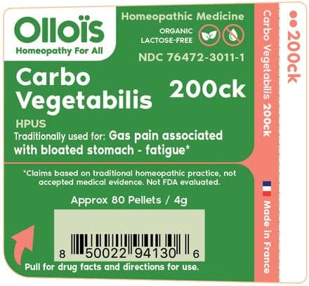 Ollois Carbo Vegetabilis 200ck أدوية المعالجة المثلية المفردة. يستخدم تقليديًا للمساعدة في تحسين أعراض آلام الغازات المرتبطة بانتفاخ المعدة والتعب.