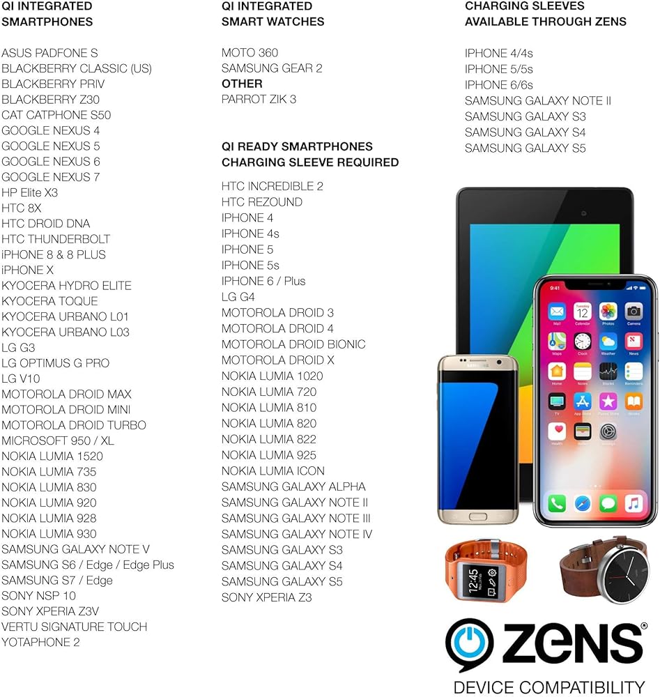 • حرية الشحن: يتيح لك حامل الشحن اللاسلكي ZENS شحن هاتفك دون عناء وبدون كابلات. ما عليك سوى وضع جهازك الذي يدعم تقنية Qi على الحامل وسيبدأ في الشحن. يعمل مع هواتف iPhone 8 وiPhone 8 Plus وiPhone X (iPhone 10) وSamsung Galaxy S7/S8 وAndroid والمزيد. تتطلب أجهزة iPhone الأقدم حافظة ZENS Qi التي تتيح شحن iPhone لاسلكيًا (تباع بشكل منفصل). يتضمن محول تيار متردد/تيار مستمر لدعم الشحن السريع من Samsung وApple Fast Charge.