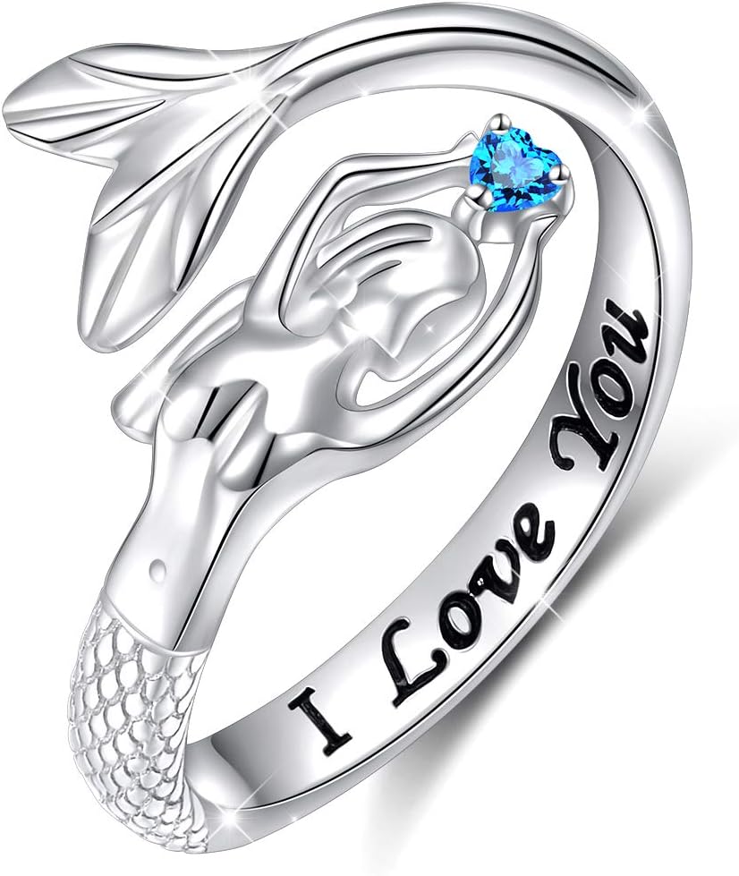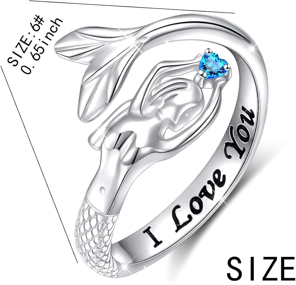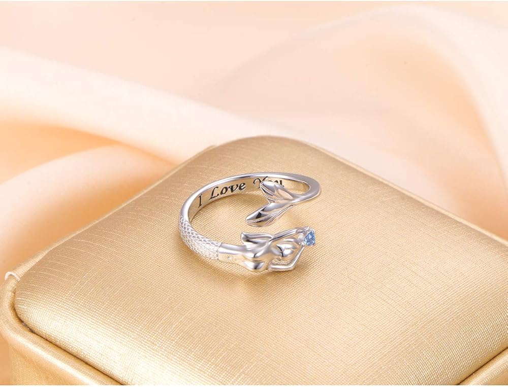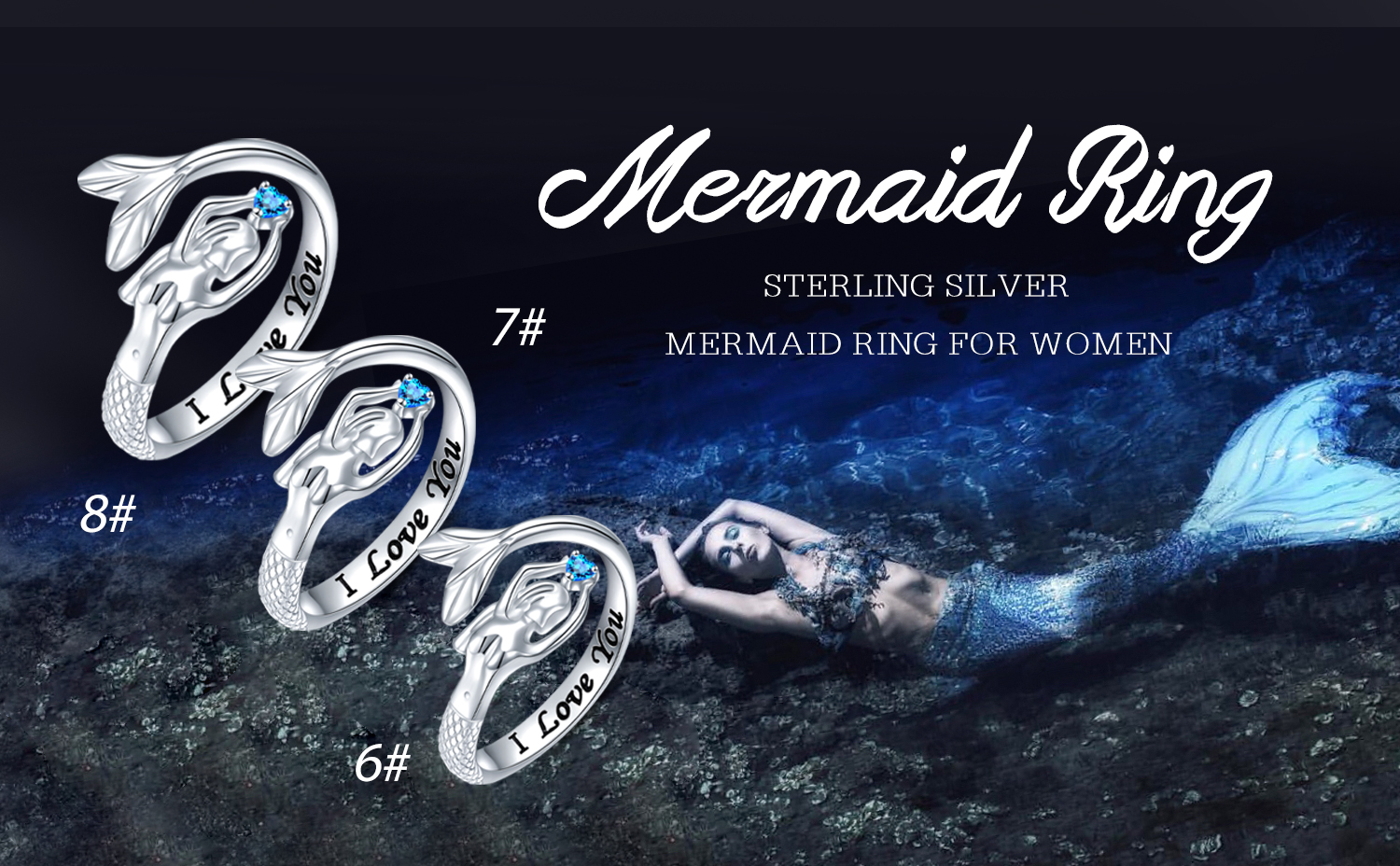 • Design Inspiration: The fishtail ring is inspired by the fairy tale Daughter of the Sea, the blue heart zircons decorate the mermaid, which is the symbol of love,elegance and charming.