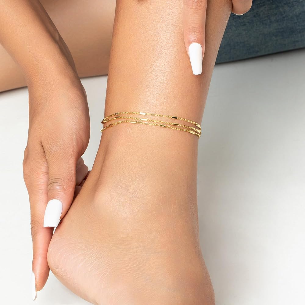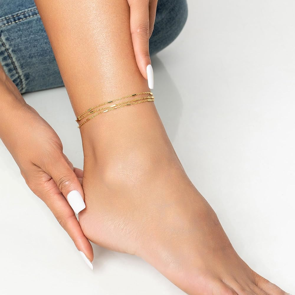 تصميم لامع: هذا الخلخال ذو الطبقات بسيط وأنيق، هذا الخلخال ذو الطبقات بتصميم أكثر إشراقًا يجعل خلخالنا رقيقًا ومميزًا، والذي يبدو مبهرًا للغاية وسهل التميز بين الناس عند ارتدائه.